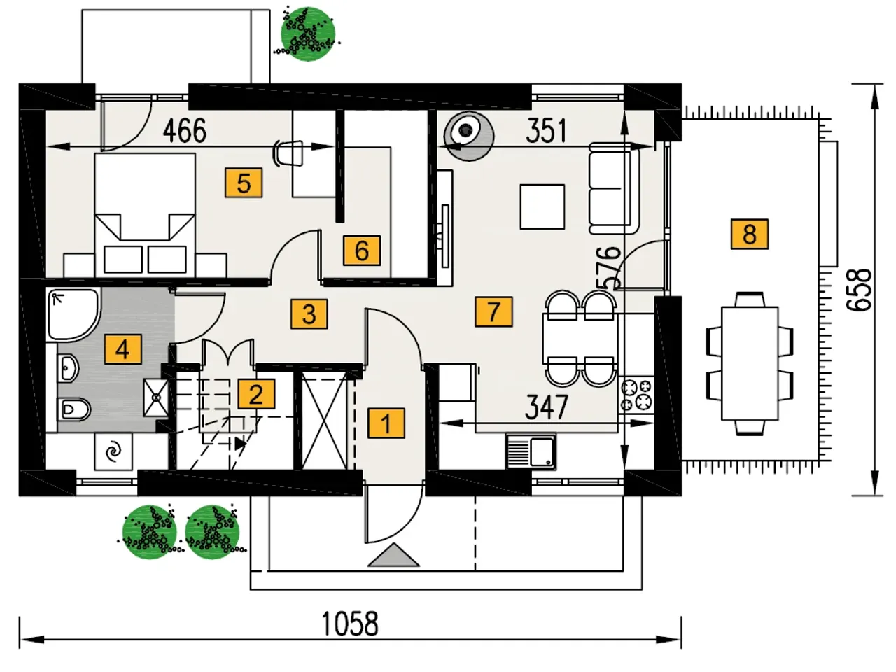 Wypełnij formularz i otrzymaj rysunki w pdf z dokładnymi wymiarami budynku i pomieszczeń (długość, szerokość, wysokość) dla projektu Przebojowy B pa - A111b/1