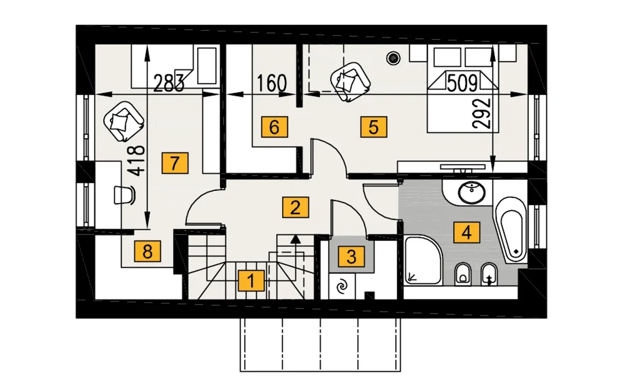 Wypełnij formularz i otrzymaj rysunki w pdf z dokładnymi wymiarami budynku i pomieszczeń (długość, szerokość, wysokość) dla projektu Przebojowy B4N - A111bN+AR4