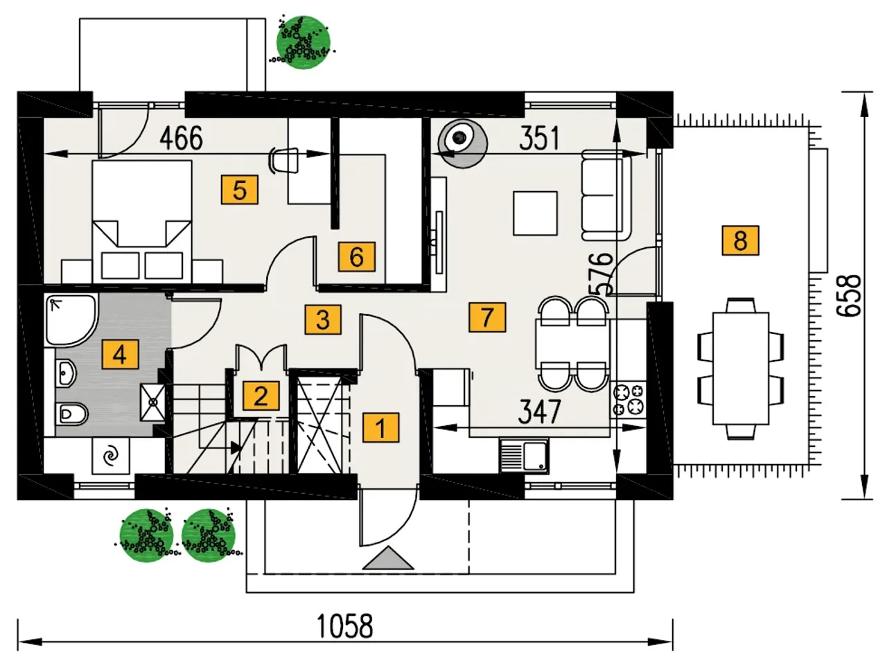 Wypełnij formularz i otrzymaj rysunki w pdf z dokładnymi wymiarami budynku i pomieszczeń (długość, szerokość, wysokość) dla projektu Przebojowy B5 - A111b+AR5