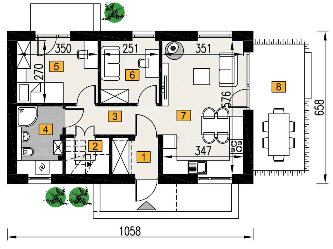Wypełnij formularz i otrzymaj rysunki w pdf z dokładnymi wymiarami budynku i pomieszczeń (długość, szerokość, wysokość) dla projektu Przebojowy CN pa - A111cN/1