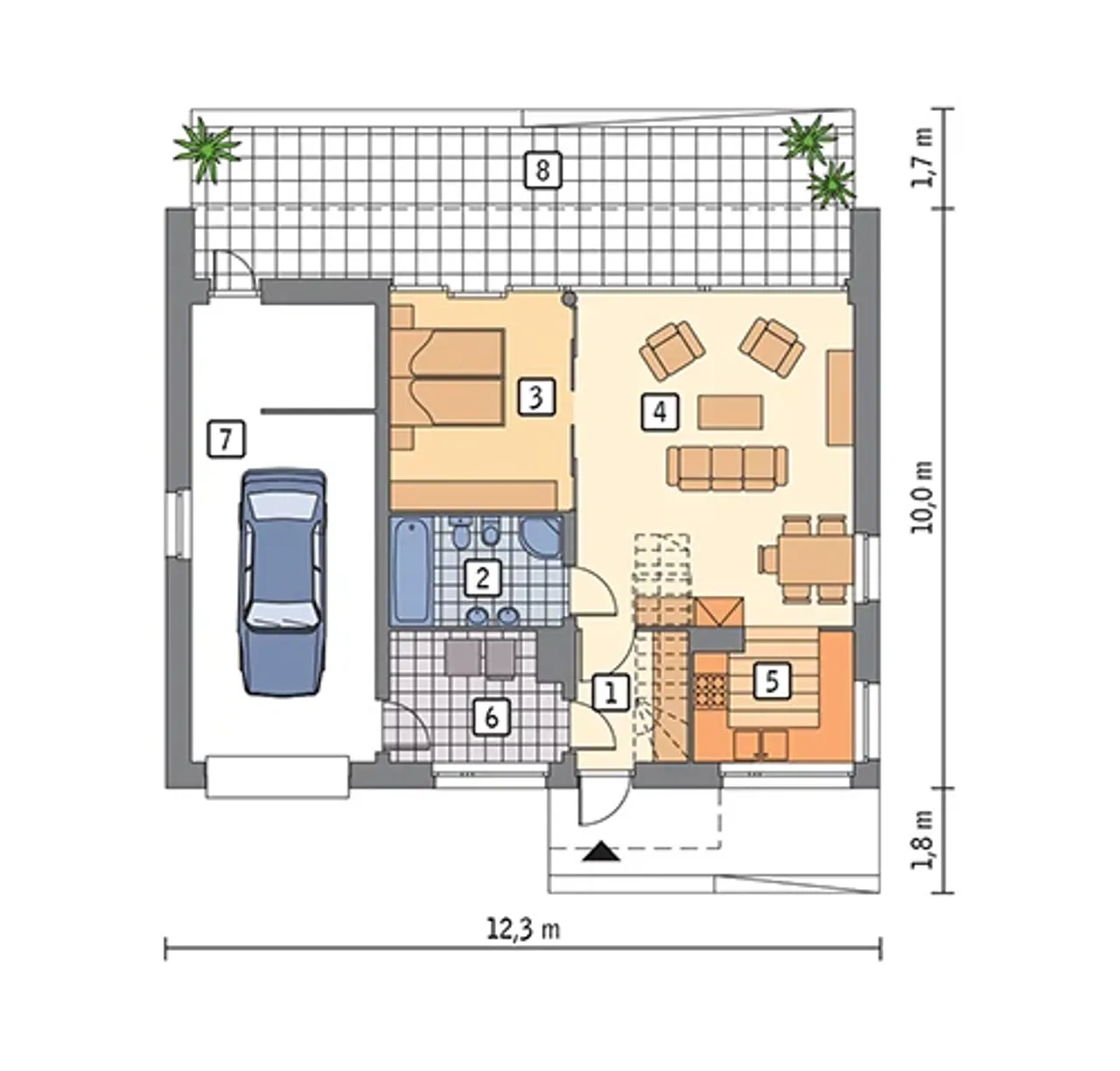 Wypełnij formularz i otrzymaj rysunki w pdf z dokładnymi wymiarami budynku i pomieszczeń (długość, szerokość, wysokość) dla projektu Przejrzysty - wariant VI - C365f