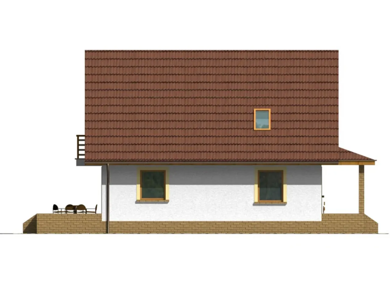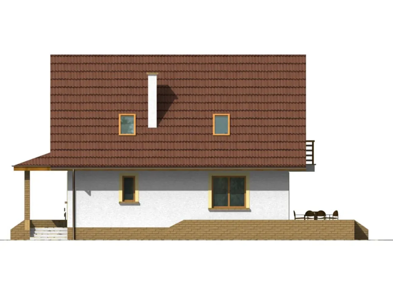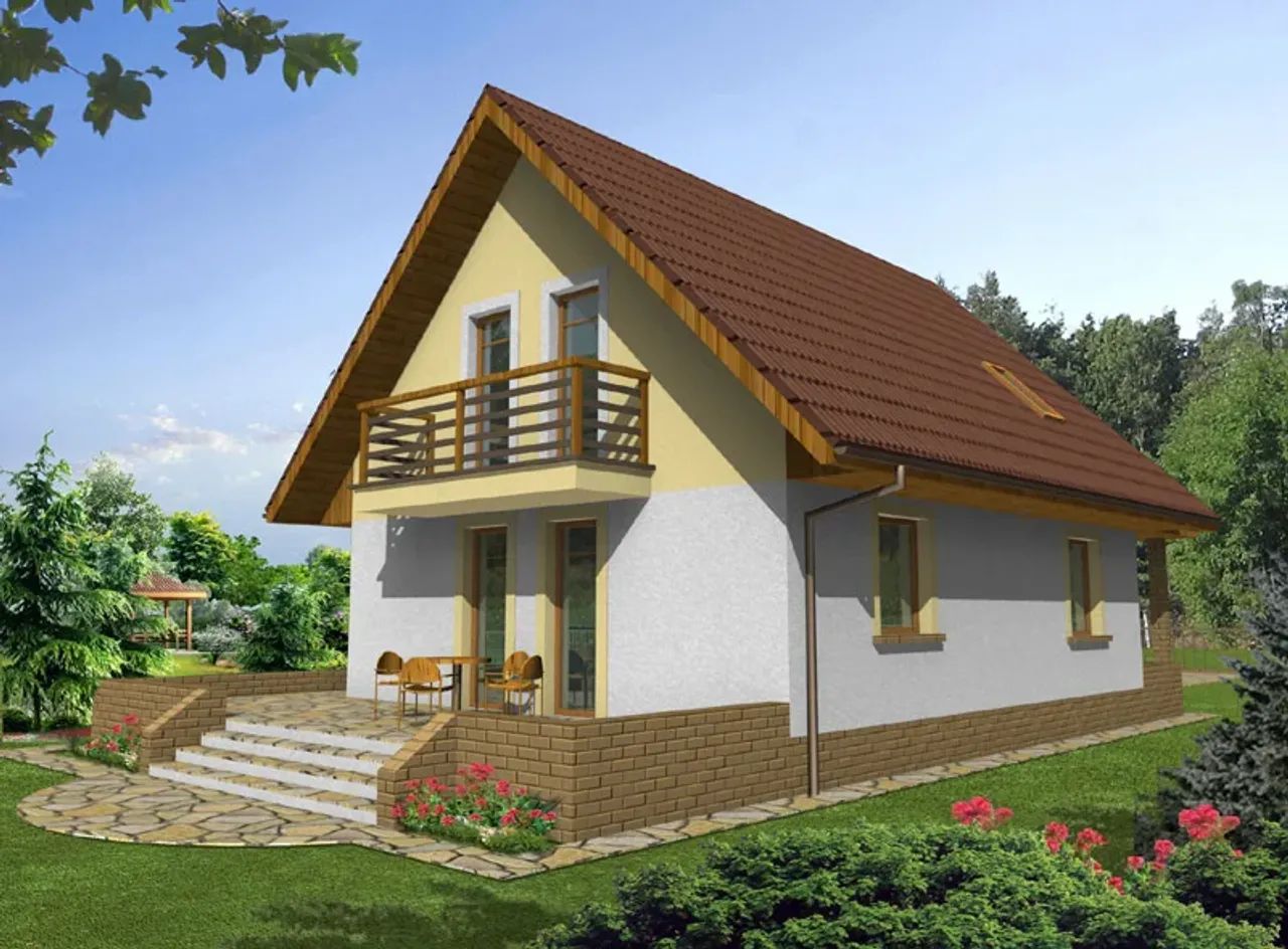 Projekt domu Przemek to nieduży, parterowy, bardzo wygodny dom o regularnej prostej bryle. Od frontu elewację zdobi bardzo ładna i funkcjonalna weranda. Układ pomieszczeń projektu domu Przemek jest bardzo funkcjonalny i spełni wymagania wszystkich domowników. W części parterowej znajduje się wiatrołap, hall, kuchnia ze spiżarnią, łazienka i kotłownia z pomieszczeniem gospodarczym a także pokój gościnny. Na poddaszu mieszczą się trzy sypialnie w tym dwie z własnym balkonem od strony ogrodu, hall i łazienka.