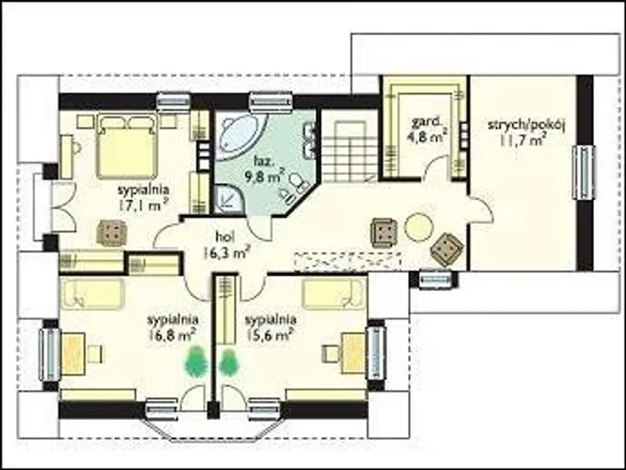 Kupując projekt w technologii murowanej powinieneś budować dom murowany. Zupełna zmiana technologii na szkieletową wymaga przeprojektowania całego budynku ( zmieniają się obciążenia, fundamenty, konstrukcja dachu). Wydamy zgodę na takie przeprojektowanie jednak wiążę się to z dużymi kosztami. Istnieją firmy wykonawcze, które podejmują się zmiany technologii budowy bezpłatnie przy skorzystaniu z ich usług wykonawczych. Zdarza się, że pracownia architektoniczna przygotowuje warianty konkretnego projektu przewidując także inne technologie. Prosimy o sprawdzenie czy istnieje poszukiwana wersja projektu, w zakładce - warianty projektu.