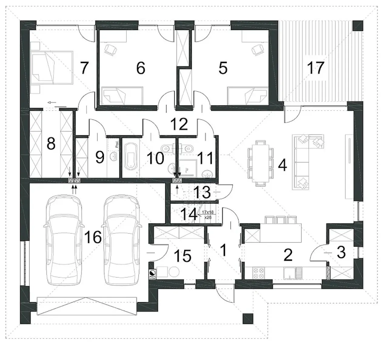 Kupując projekt w technologii murowanej powinieneś budować dom murowany. Zupełna zmiana technologii na szkieletową wymaga przeprojektowania całego budynku ( zmieniają się obciążenia, fundamenty, konstrukcja dachu). Wydamy zgodę na takie przeprojektowanie jednak wiążę się to z dużymi kosztami. Istnieją firmy wykonawcze, które podejmują się zmiany technologii budowy bezpłatnie przy skorzystaniu z ich usług wykonawczych. Zdarza się, że pracownia architektoniczna przygotowuje warianty konkretnego projektu przewidując także inne technologie. Prosimy o sprawdzenie czy istnieje poszukiwana wersja projektu, w zakładce - warianty projektu.