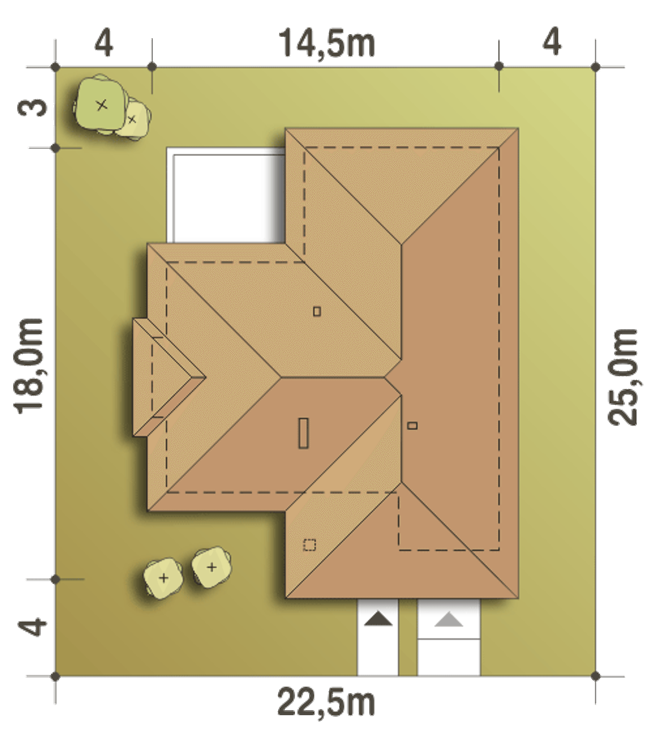 Wypełnij formularz i otrzymaj rysunki w pdf z dokładnymi wymiarami budynku i pomieszczeń (długość, szerokość, wysokość) dla projektu Radek II z garażem 1-st. A