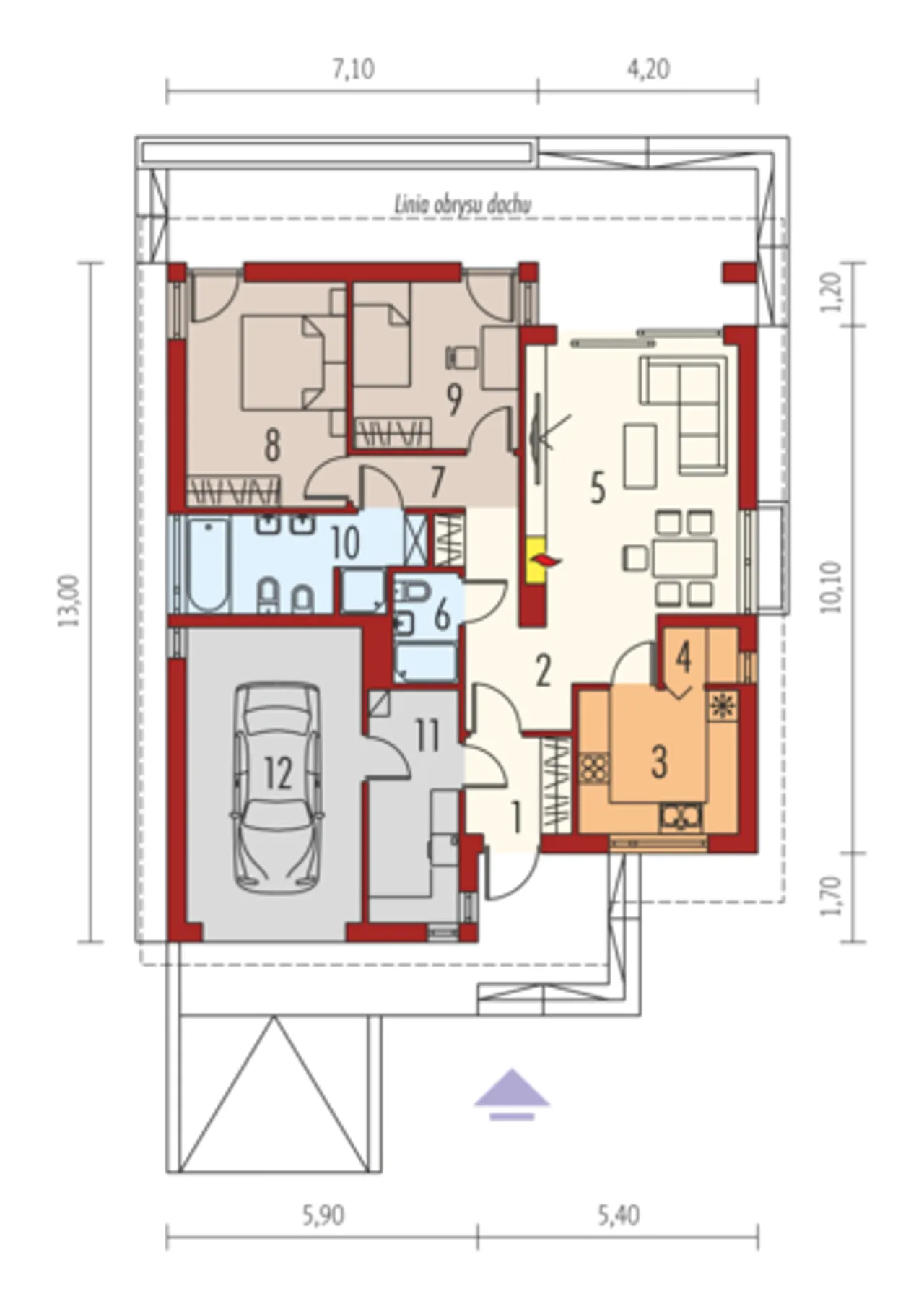 Wypełnij formularz i otrzymaj rysunki w pdf z dokładnymi wymiarami budynku i pomieszczeń (długość, szerokość, wysokość) dla projektu Rafael G1 30 stopni
