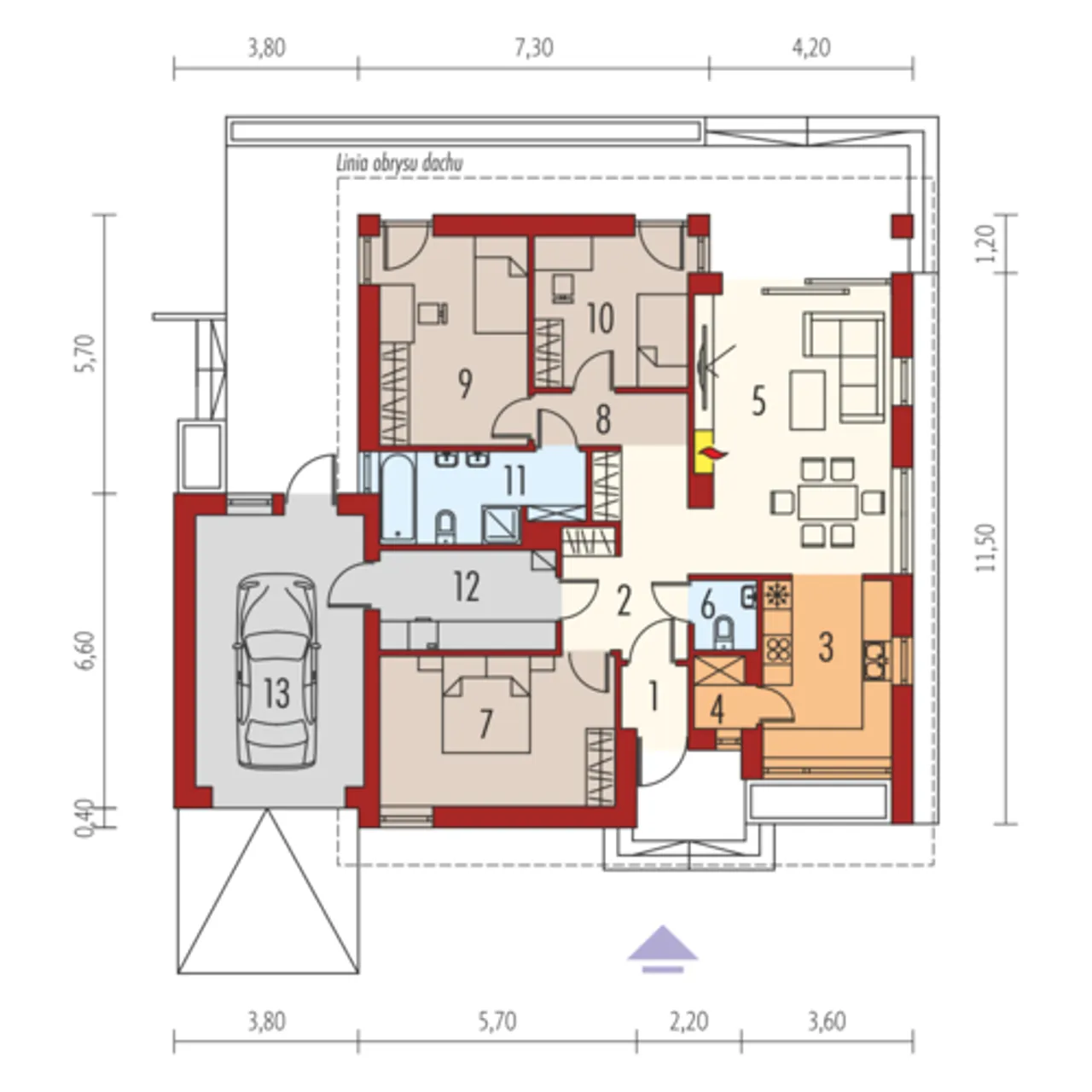 Wypełnij formularz i otrzymaj rysunki w pdf z dokładnymi wymiarami budynku i pomieszczeń (długość, szerokość, wysokość) dla projektu Rafael IV G1 30 stopni