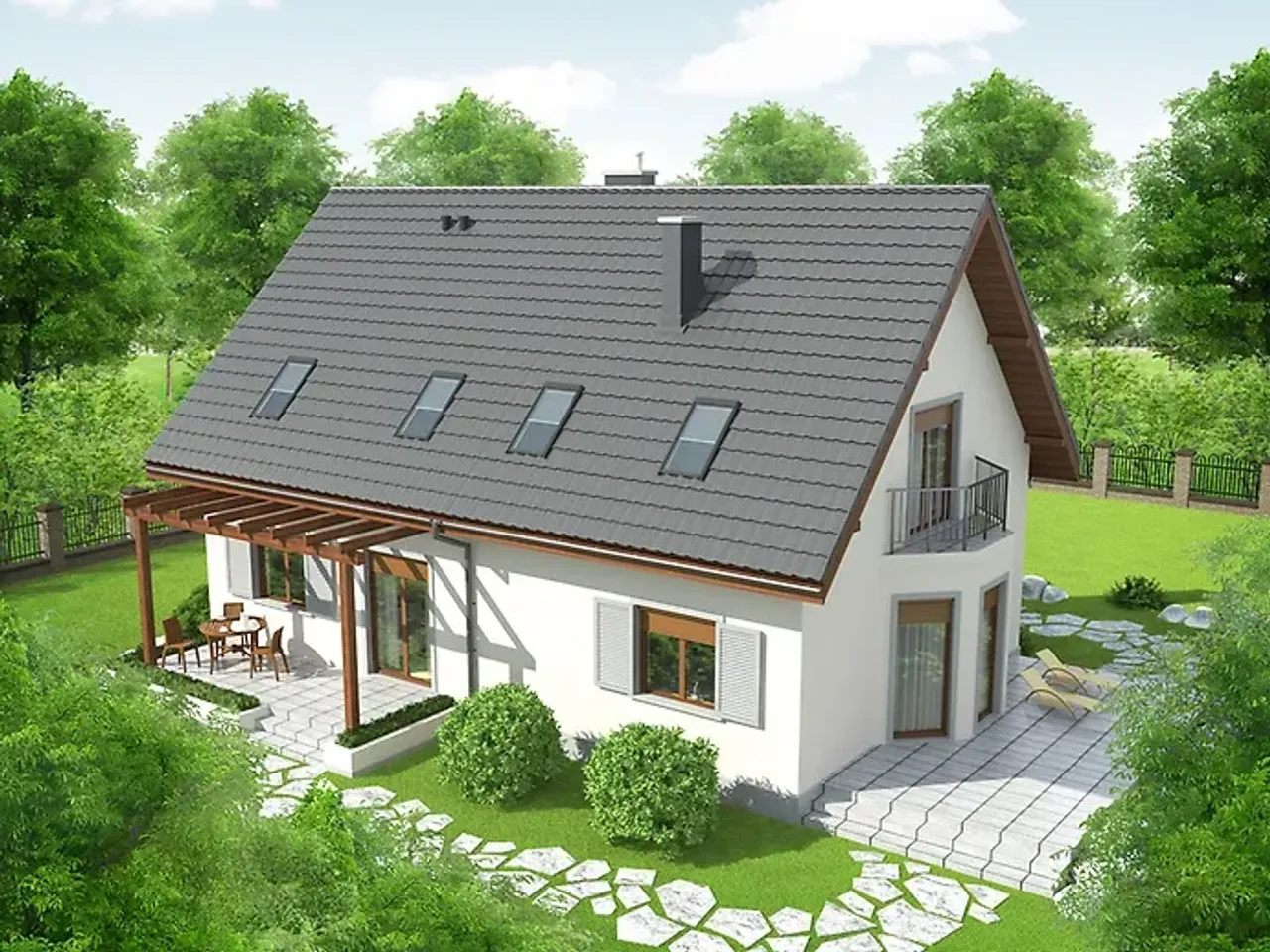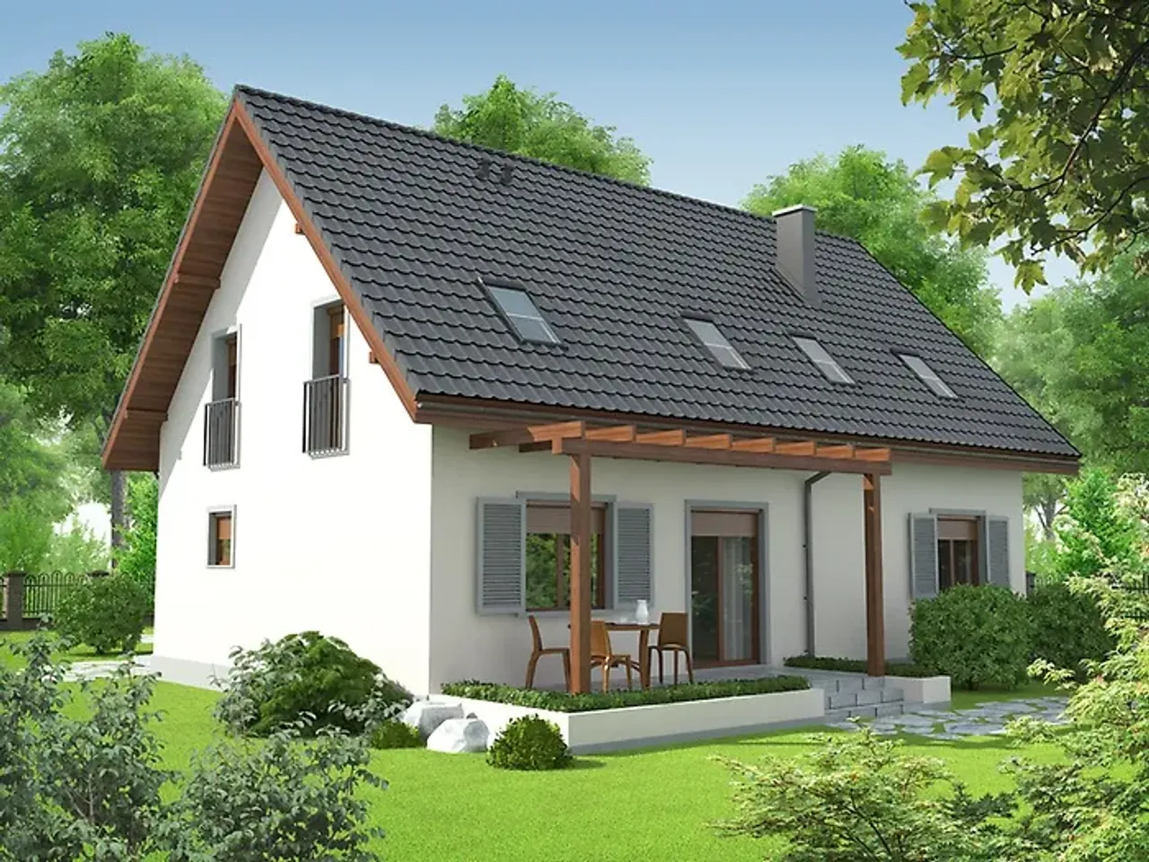 Gotowy projekt domu Raul to murowany dom bez garażu. Decydując się na projekt Raul, przyszli inwestorzy zamieszkają w budynku parterowym z poddaszem użytkowym. Konstrukcję dachu wieńczy dach dwuspadowy, a całość utrzymana jest w tradycyjnej stylistyce. Gotowy projekt domu Raul będzie domem w zabudowie całorocznej, bez podpiwniczenia, w którym nie przewidziano instalacji kominkowej. Projekt charakteryzuje połaczenie tradycyjności z nowoczesnością dzięki prostej bryle i wspólczesnym rozwiązaniom wykorzystanym przy projektowaniu rozkładu pomieszczeń wewnątrz budynku. Ważnymi elementami wykorzystanymi w projekcie jest elegancki wygląd zewnętrzny, proporcjonalna bryła, funkcjonalne rozmieszczenie pomieszczeń wewnątrz budynku oraz dbałość o odpowiednie doświetlenie pomieszczeń. Projekt charakteryzuje elegancka forma i tradycyjna estetyka.