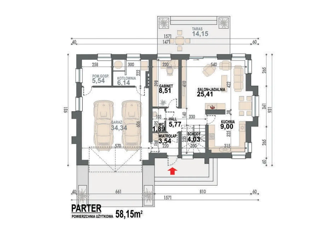 Wypełnij formularz i otrzymaj rysunki w pdf z dokładnymi wymiarami budynku i pomieszczeń (długość, szerokość, wysokość) dla projektu Reksio N 2G+