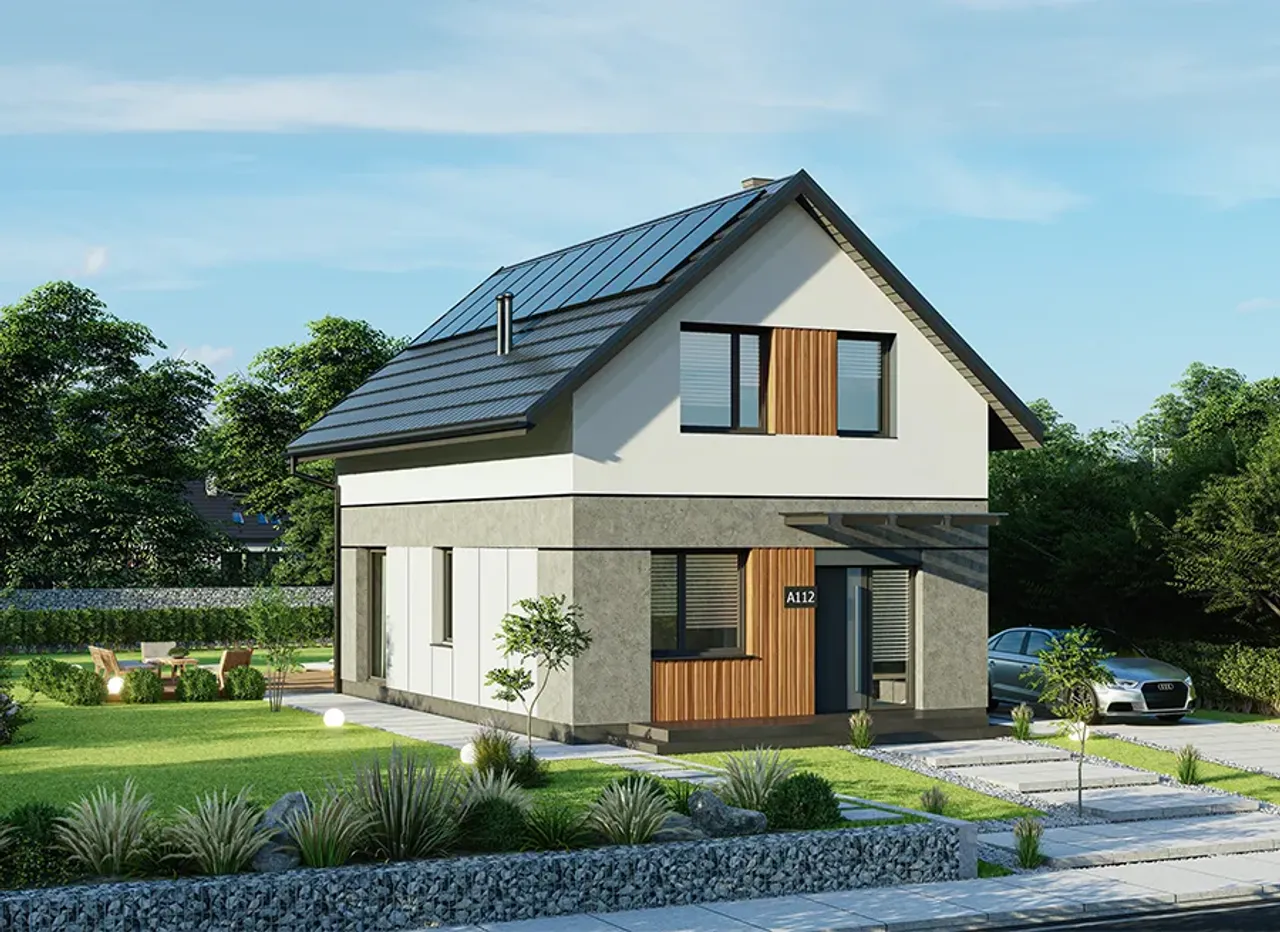 Wypełnij formularz i otrzymaj rysunki w pdf z dokładnymi wymiarami budynku i pomieszczeń (długość, szerokość, wysokość) dla projektu Rezolutny A - A112a