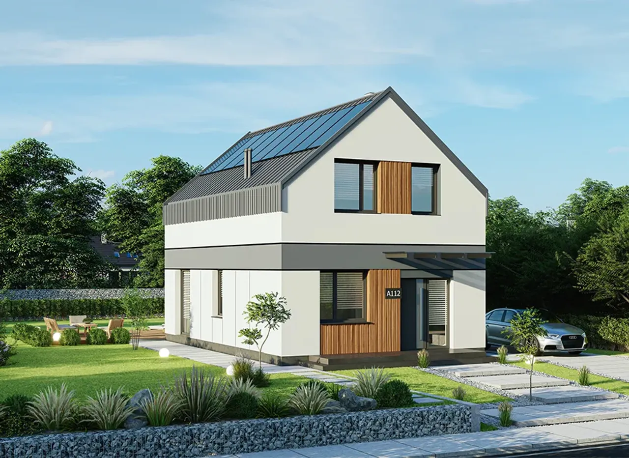 Wypełnij formularz i otrzymaj rysunki w pdf z dokładnymi wymiarami budynku i pomieszczeń (długość, szerokość, wysokość) dla projektu Rezolutny AN - A112aN