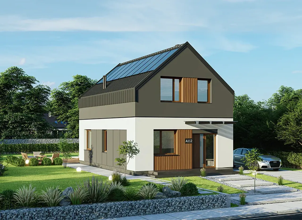Wypełnij formularz i otrzymaj rysunki w pdf z dokładnymi wymiarami budynku i pomieszczeń (długość, szerokość, wysokość) dla projektu Rezolutny BN pa - A112bN/1