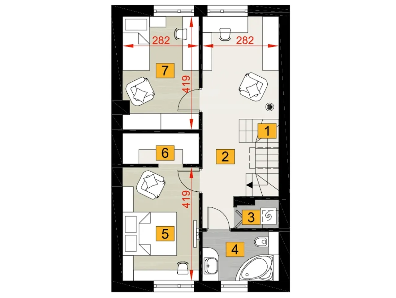 Wypełnij formularz i otrzymaj rysunki w pdf z dokładnymi wymiarami budynku i pomieszczeń (długość, szerokość, wysokość) dla projektu Rezolutny C2N - A112cN+AR2