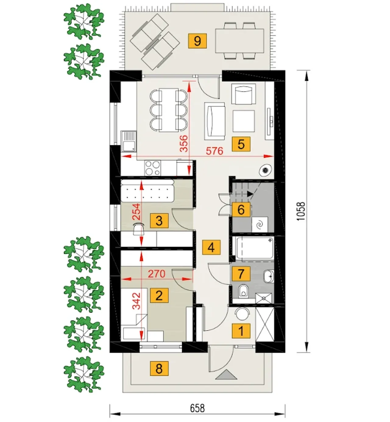 Wypełnij formularz i otrzymaj rysunki w pdf z dokładnymi wymiarami budynku i pomieszczeń (długość, szerokość, wysokość) dla projektu Rezolutny CN pa - A112cN/1