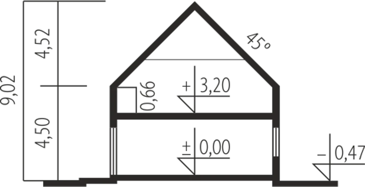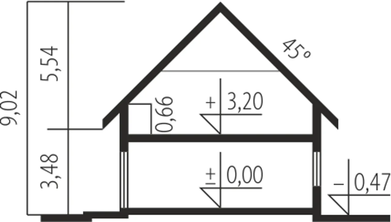 Kąt nachylenia dachu 45 ° |
