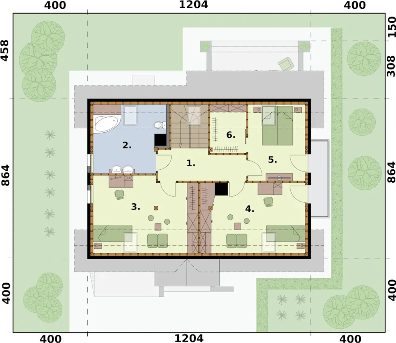 Wypełnij formularz i otrzymaj rysunki w pdf z dokładnymi wymiarami budynku i pomieszczeń (długość, szerokość, wysokość) dla projektu Rio szkielet drewniany