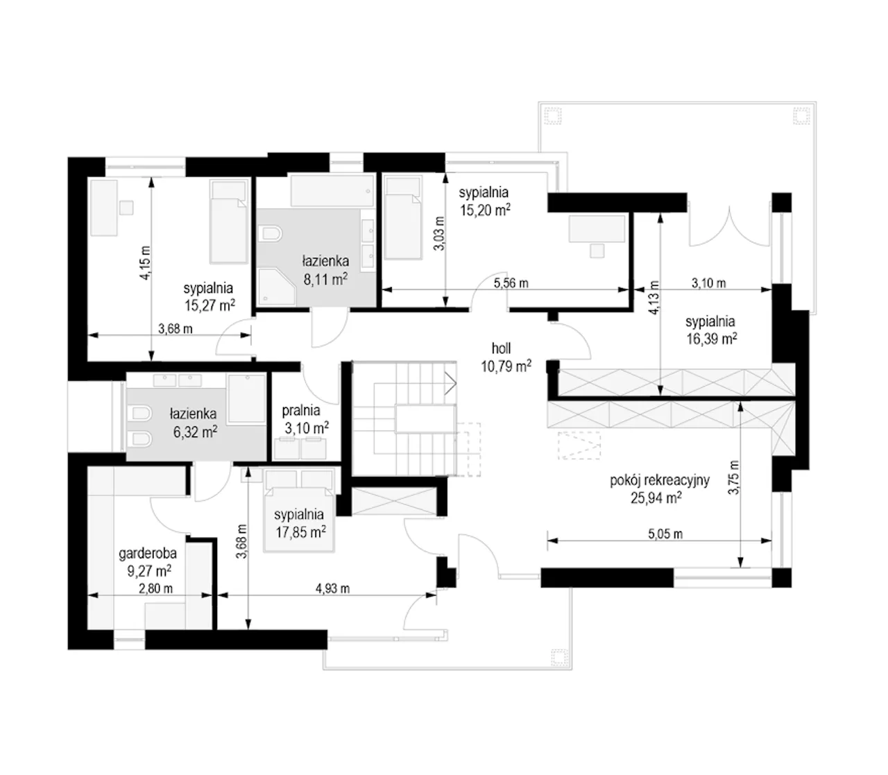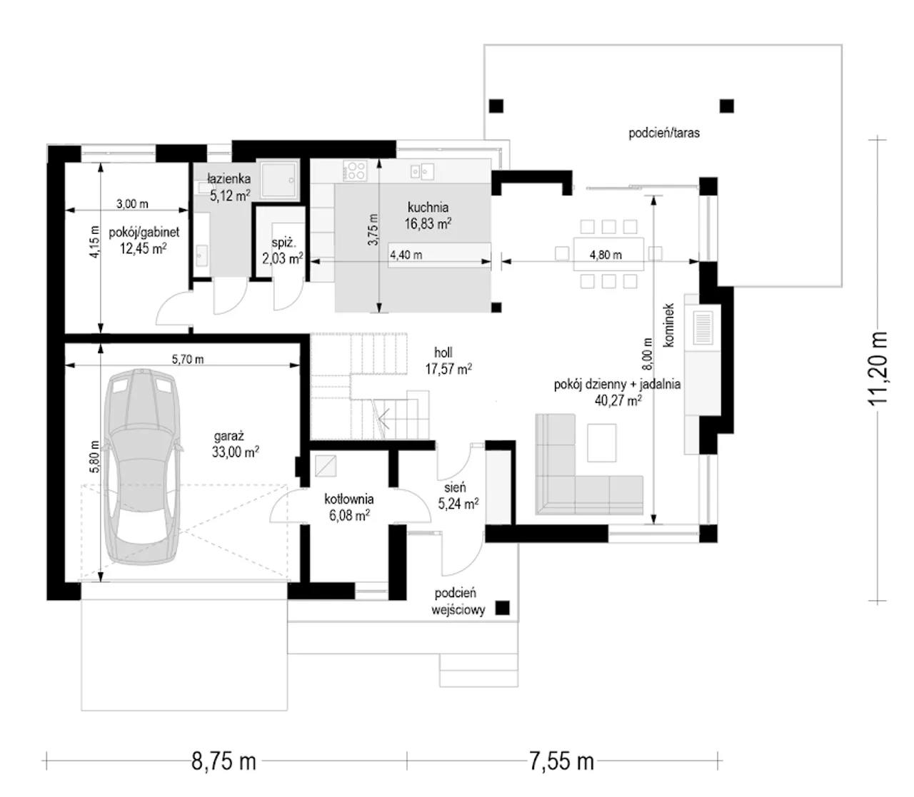 Wypełnij formularz i otrzymaj rysunki w pdf z dokładnymi wymiarami budynku i pomieszczeń (długość, szerokość, wysokość) dla projektu Riwiera 3 wariant C