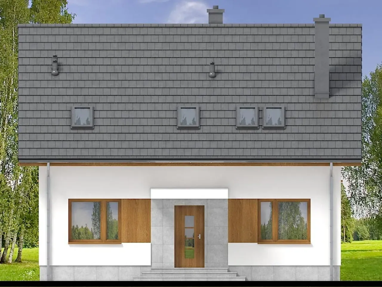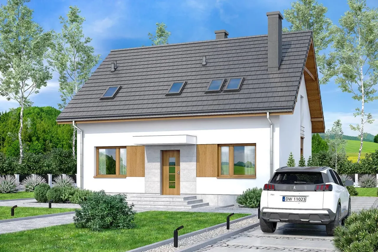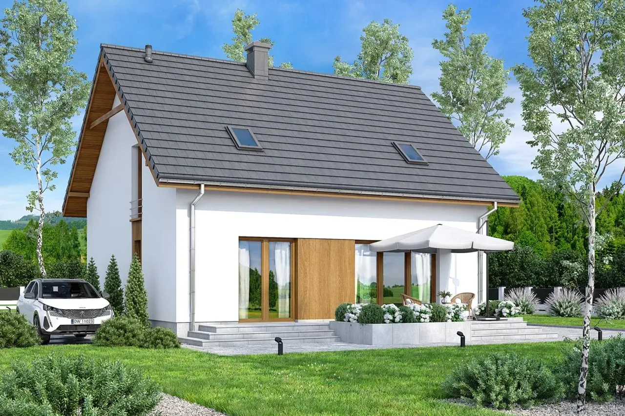 Dom Rodzinek 3 jest doskonałym wyborem dla rodzin preferujących przytulne wnętrza z dostępem do ogrodu i miejscem na kominek. Jego bryła, rozplanowana na parterze i funkcjonalnym poddaszu, daje niemal nieograniczone możliwości aranżacyjne, zwiększając wygodę i prywatność dla każdego domownika.