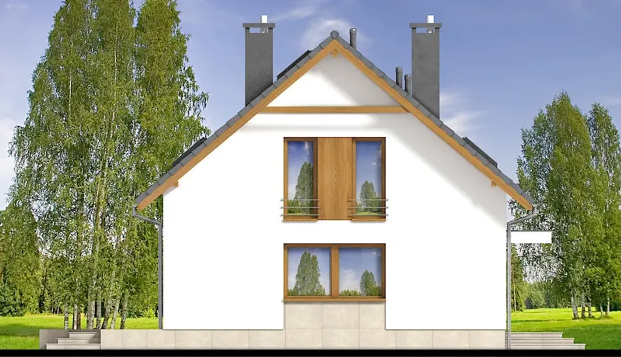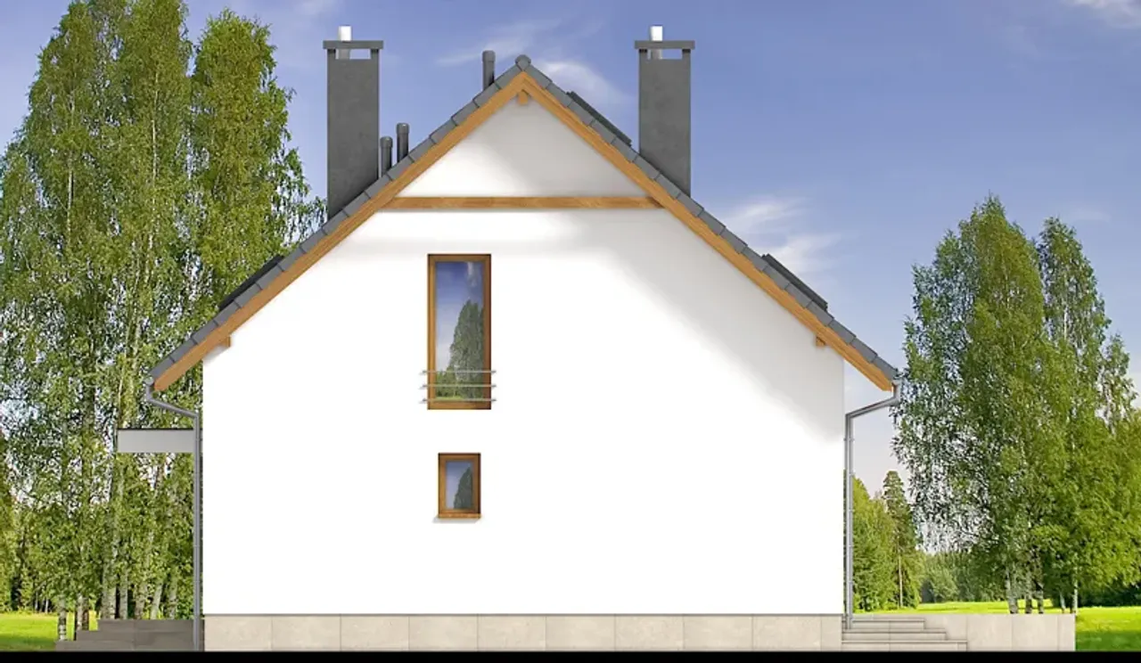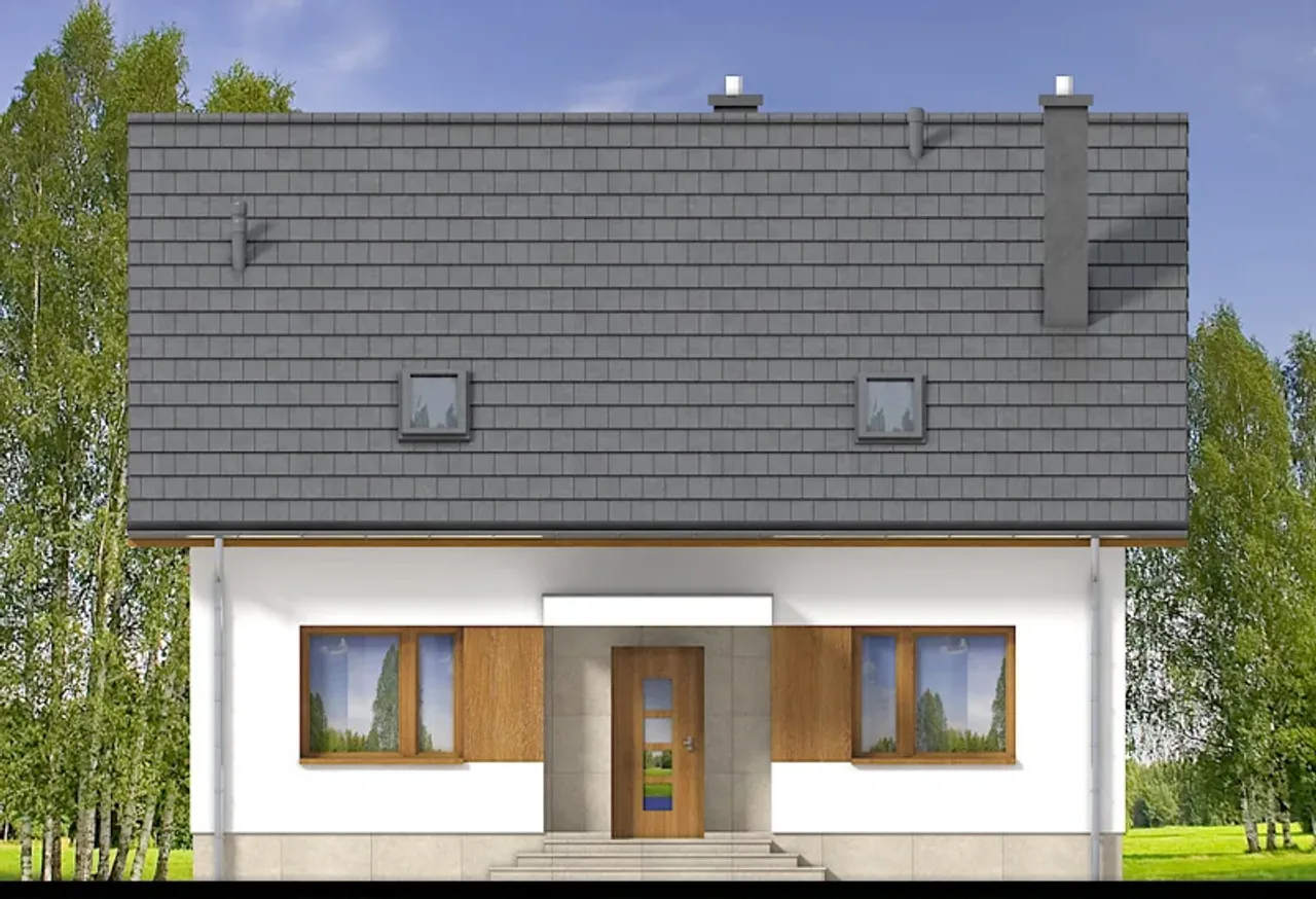 Dom budowany według tego projektu sprawdzi się na działkach z drogą od południa lub północy. Harmonijna kompozycja materiałów budowlanych i klasyczny, dwuspadowy dach podkreślają nowoczesny charakter, jednocześnie zapewniając ponadczasową estetykę i oszczędność kosztów eksploatacji.