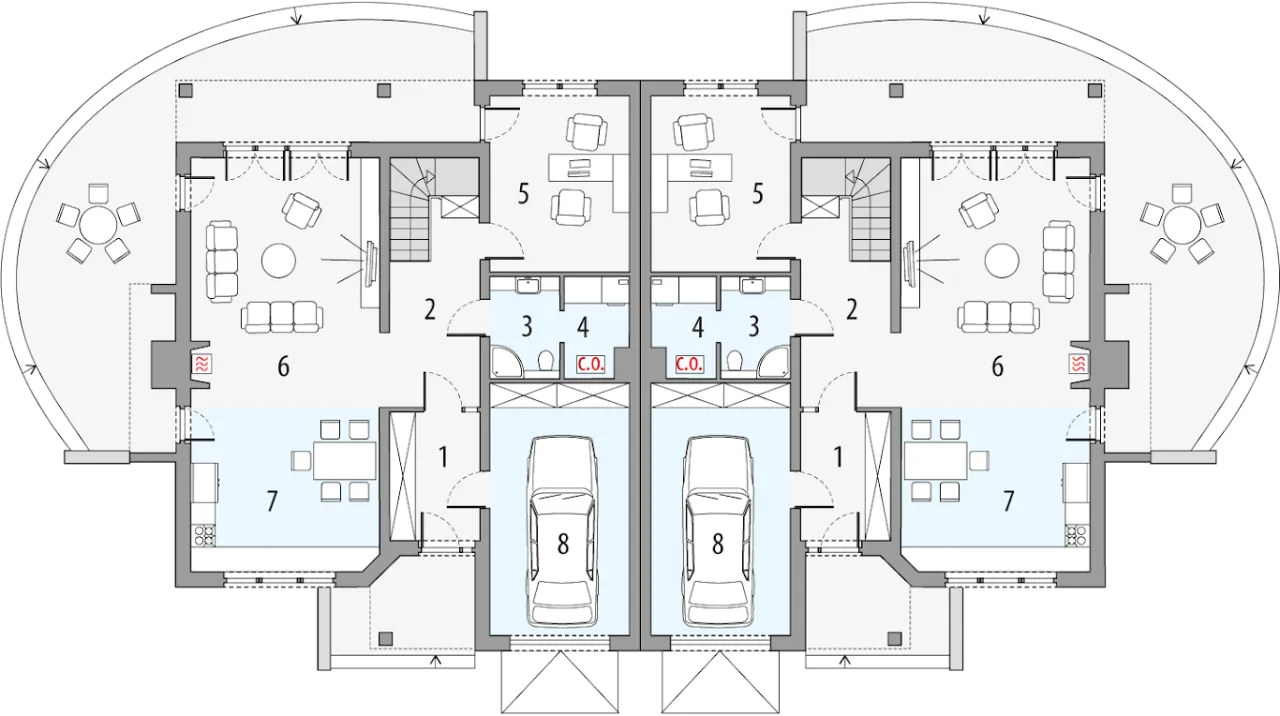 Rzuty gotowego projektu domu Rodzynek 2A - bliźniak L.LL