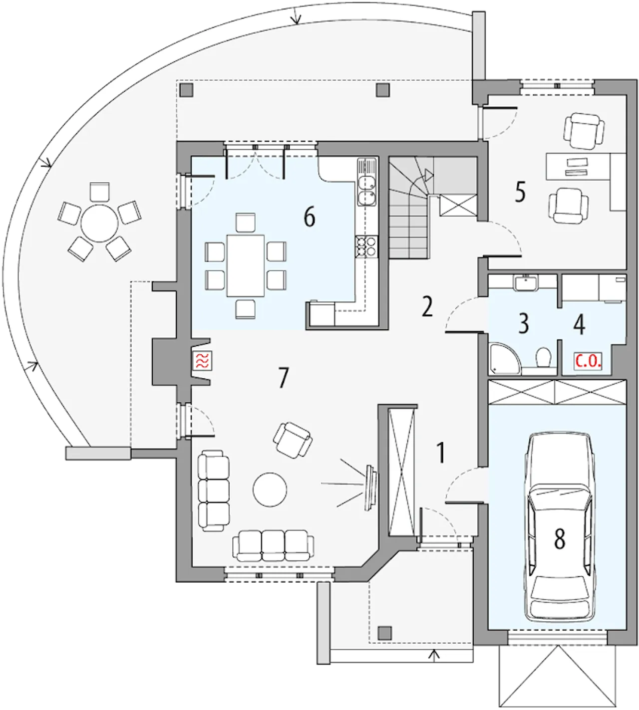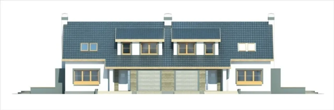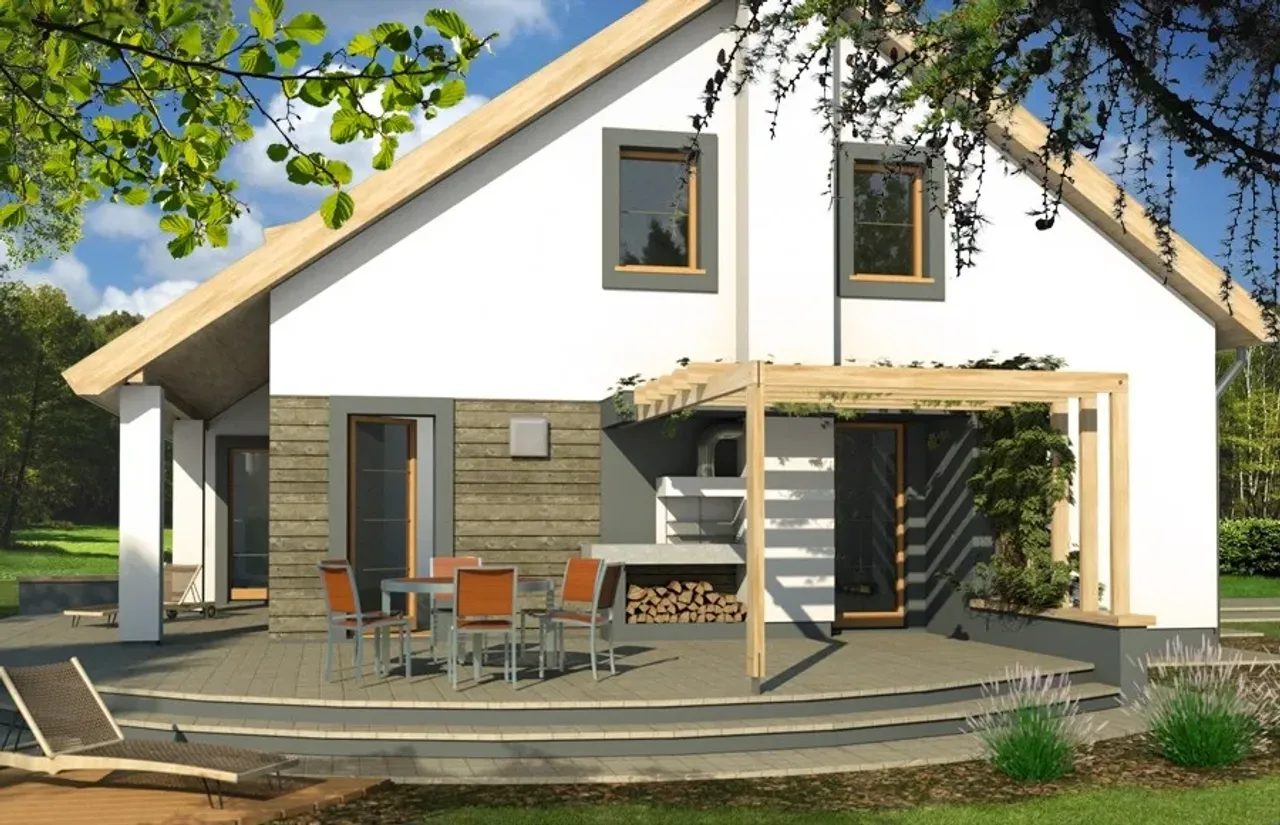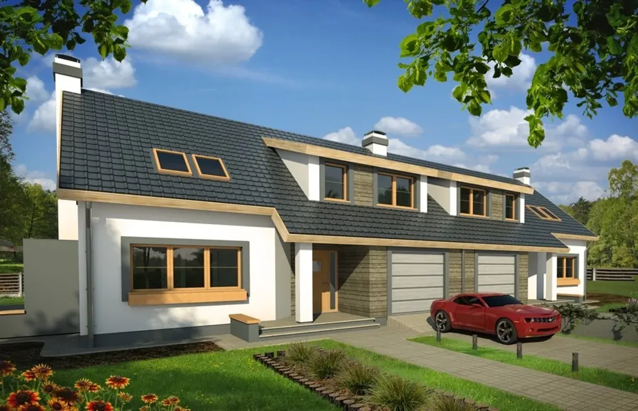 Projekt domu Rodzynek 2B - segment lewy prezentuje się jako kompaktowe i funkcjonalne rozwiązanie dla rodziny poszukującej przytulnego, ale nowoczesnego miejsca do życia. Architektura domu łączy w sobie eleganckie i proste linie z nowoczesnymi elementami, takimi jak duże przeszklenia, które zapewniają obfite światło naturalne do wnętrza. Warto podkreślić, że pomieszczenia są zaprojektowane w sposób, który maksymalnie wykorzystuje dostępną przestrzeń, co jest idealne dla osób szukających racjonalnych rozwiązań mieszkaniowych. Projekt uwzględnia także wizję współczesnych potrzeb, dostarczając przestrzeń, która może być adaptowana do zmieniającego się trybu życia rodziny.