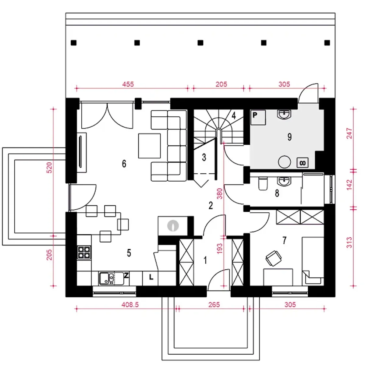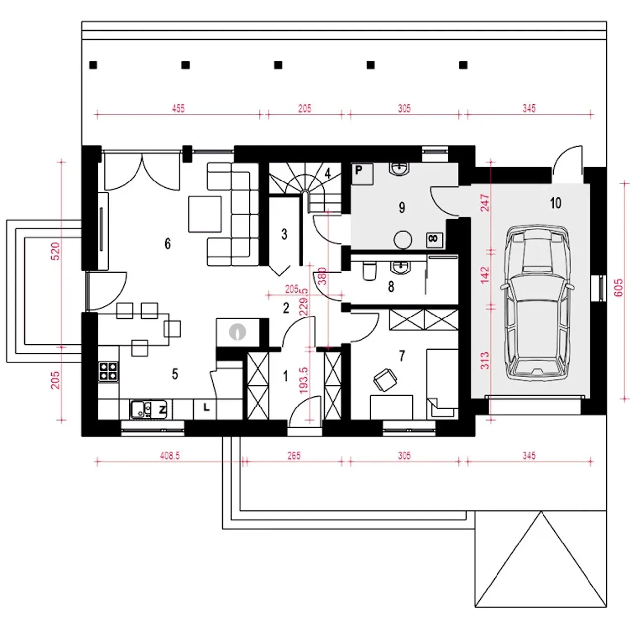 Wypełnij formularz i otrzymaj rysunki w pdf z dokładnymi wymiarami budynku i pomieszczeń (długość, szerokość, wysokość) dla projektu Rodzynka z garażem