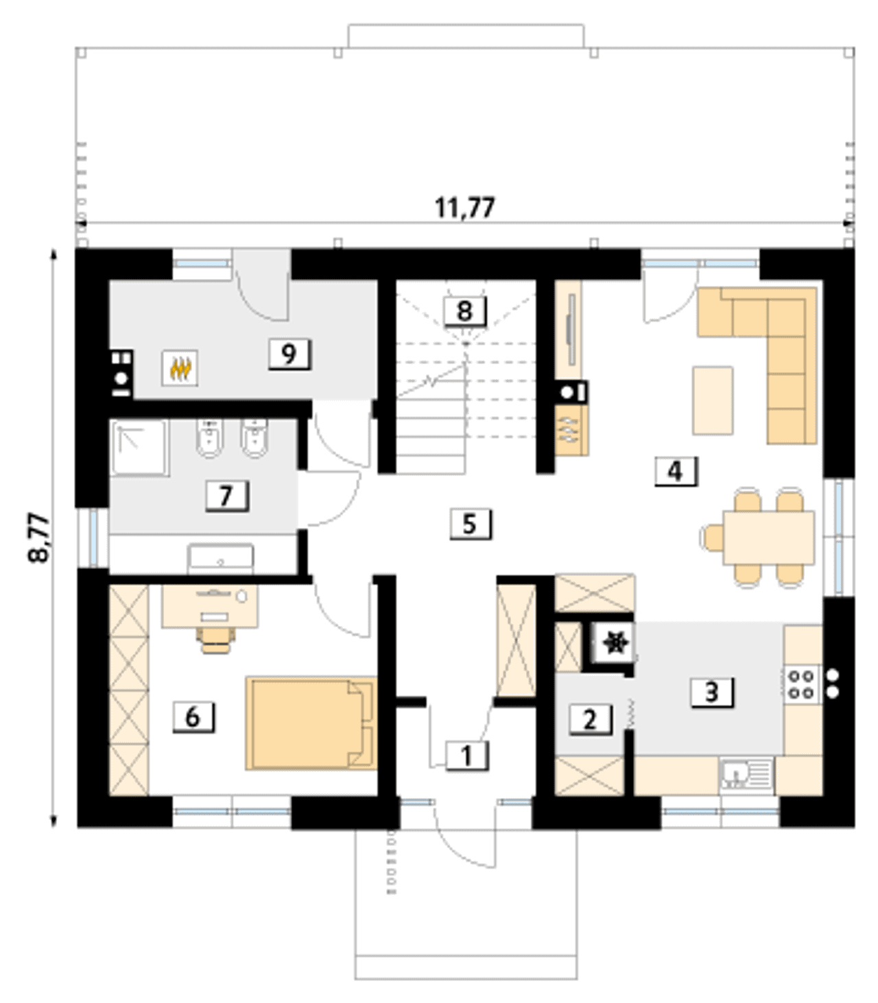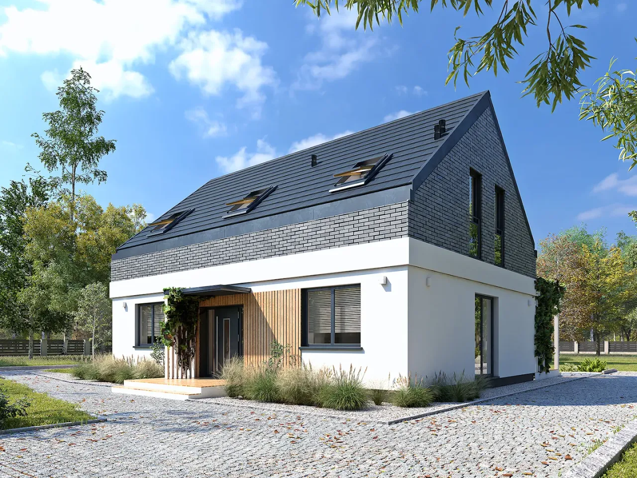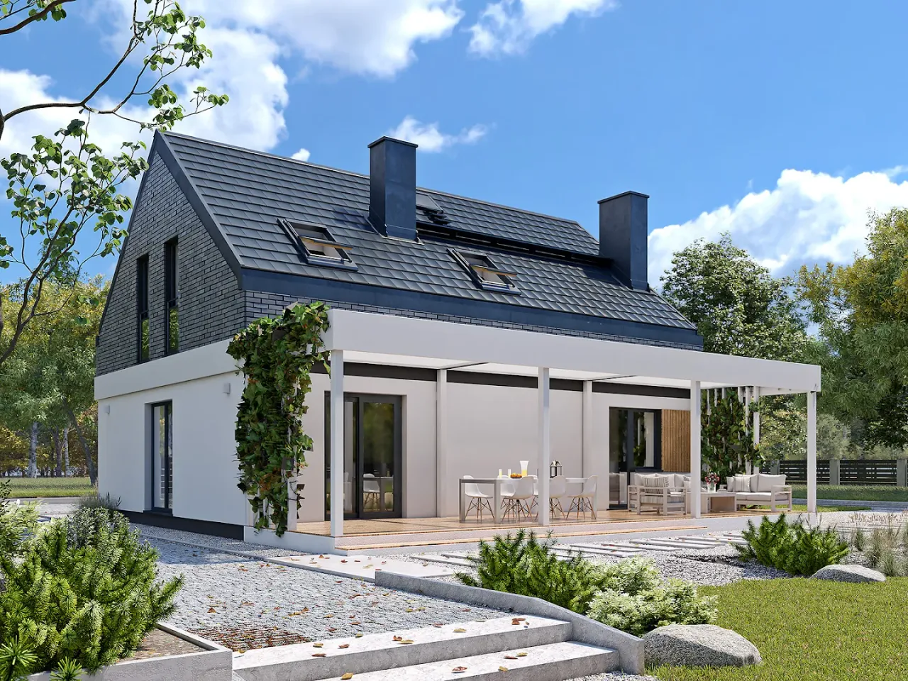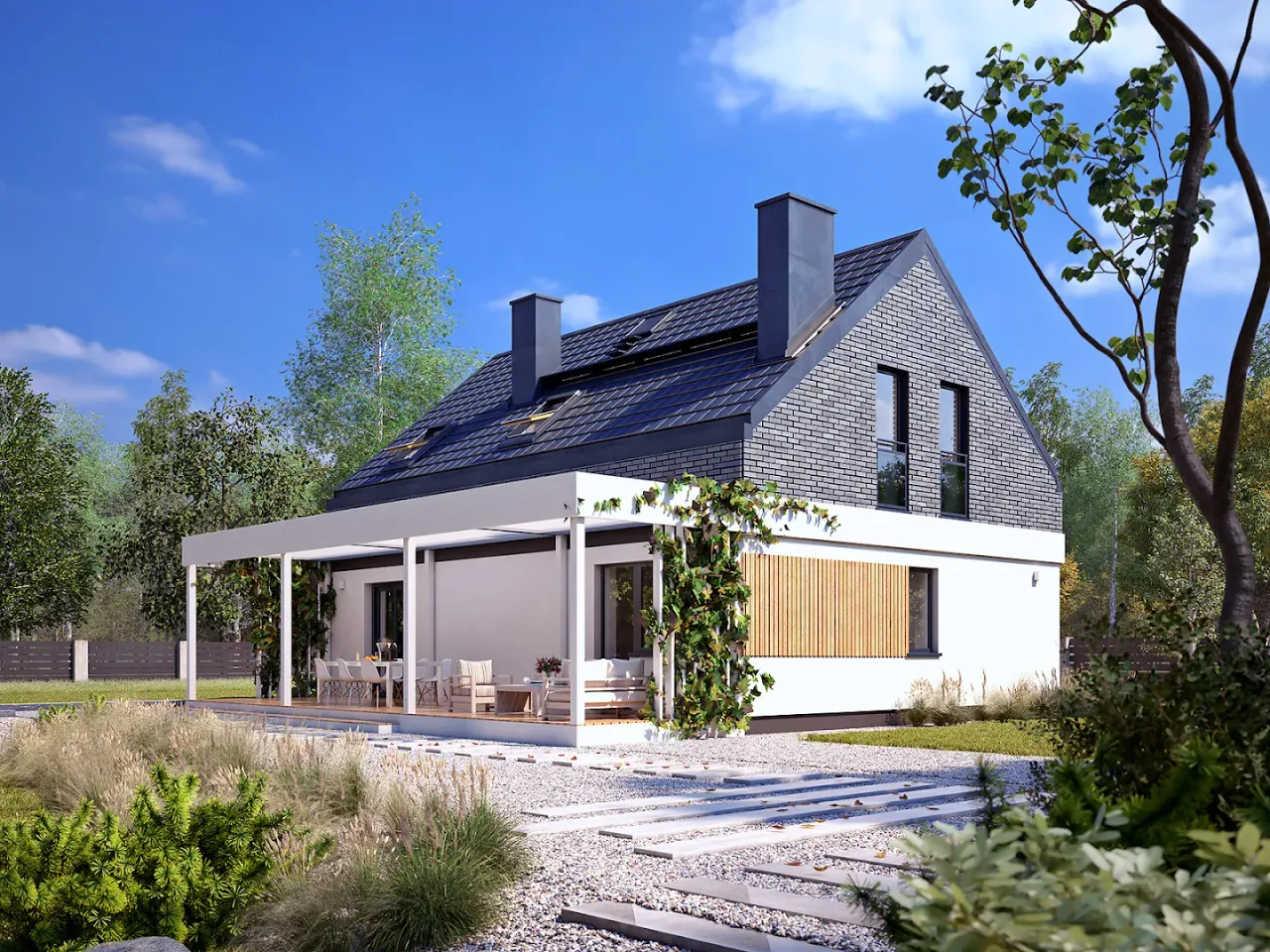 Projekt domu Rufus zwraca uwagę prostym, nowoczesnym designem, który od razu przyciąga. Czy warto zwrócić uwagę na tę kompaktową bryłę? Analizując rzuty, można zauważyć funkcjonalne rozplanowanie pomieszczeń, co jest kluczowe dla każdej rodziny. Salon połączony z kuchnią wydaje się być dobrze przemyślanym rozwiązaniem, ale czy takie połączenie sprawdzi się w codziennym użytkowaniu? Pytanie też, czy taras, który widoczny jest na wizualizacji, spełni oczekiwania w letnie dni? Atutem jest bez wątpienia rozmieszczenie okien, które zapewniają odpowiednią ilość naturalnego światła. Jednak czy ilość sypialni i ich układ odpowiadają na potrzeby każdej rodziny? Warto to dokładnie przemyśleć, analizując codzienną rutynę oraz przyszłe potrzeby domowników.