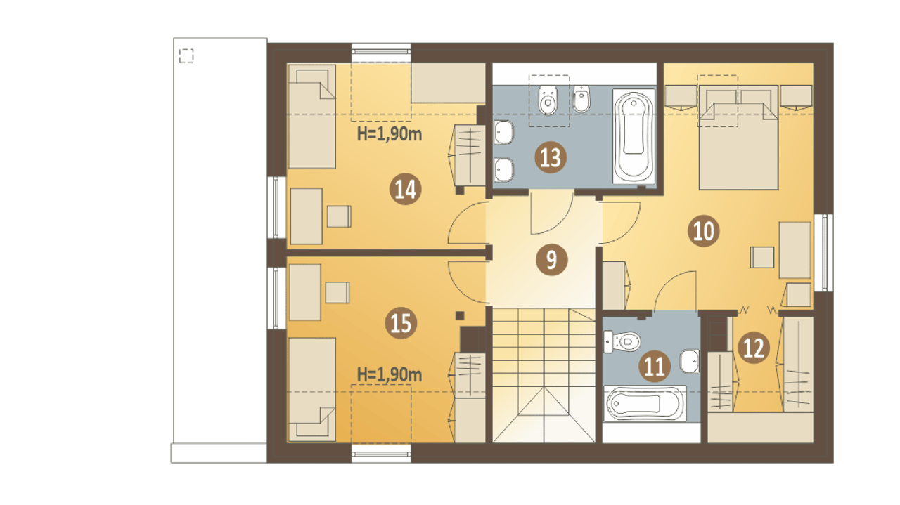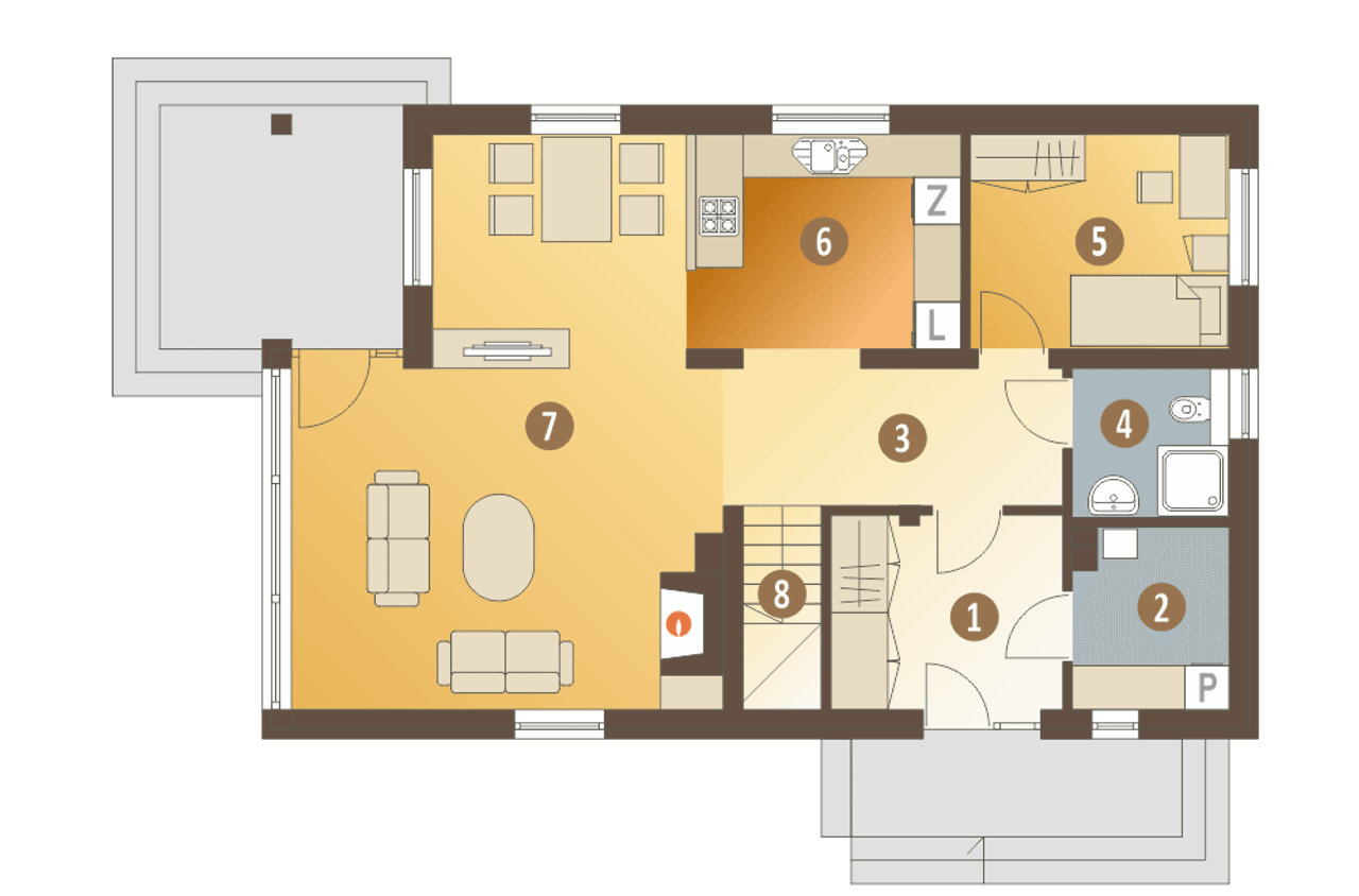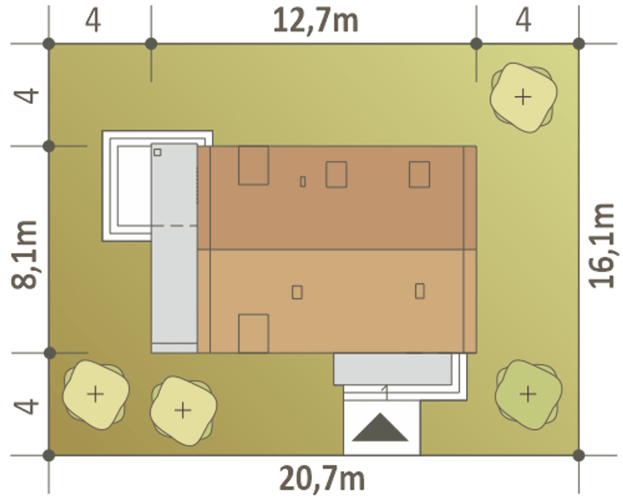 Wypełnij formularz i otrzymaj rysunki w pdf z dokładnymi wymiarami budynku i pomieszczeń (długość, szerokość, wysokość) dla projektu Rumcajs bez garażu B1