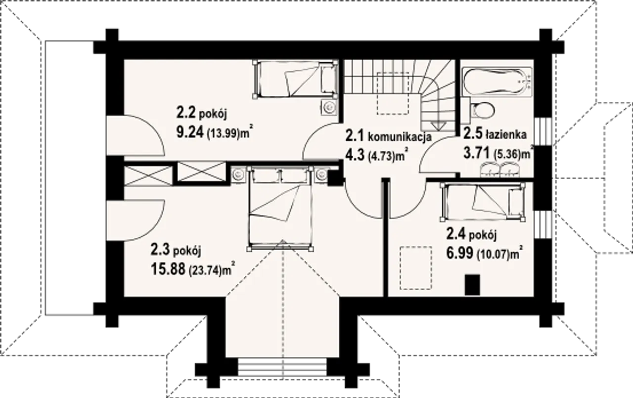 Wypełnij formularz i otrzymaj rysunki w pdf z dokładnymi wymiarami budynku i pomieszczeń (długość, szerokość, wysokość) dla projektu Rytowo 3 dwk