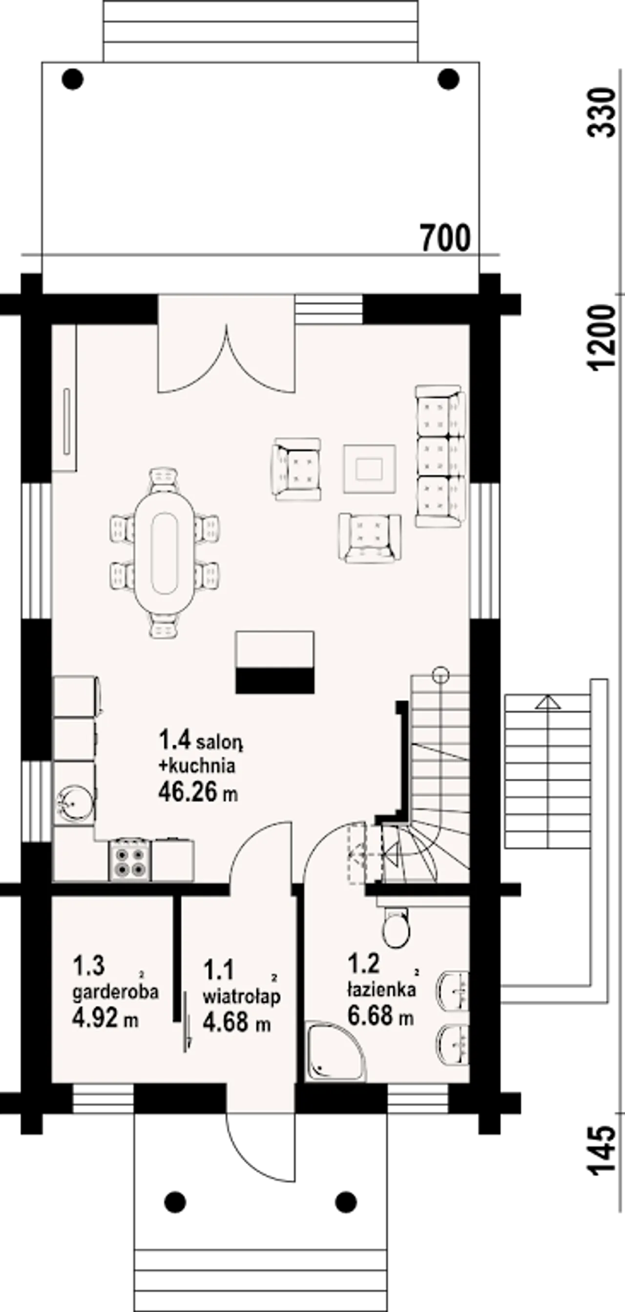 Wypełnij formularz i otrzymaj rysunki w pdf z dokładnymi wymiarami budynku i pomieszczeń (długość, szerokość, wysokość) dla projektu Rytowo dw 39