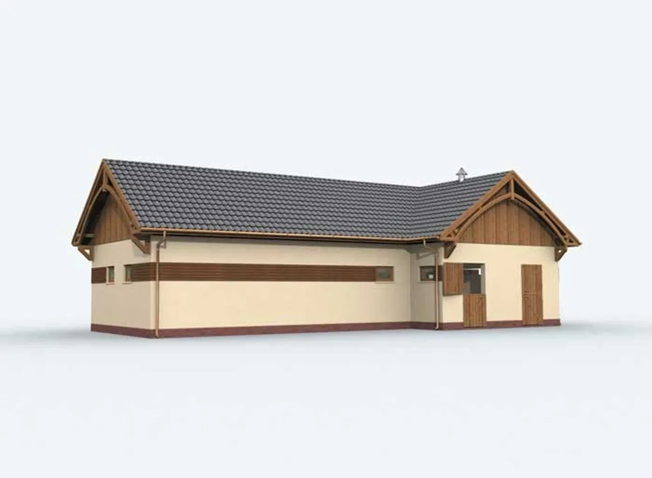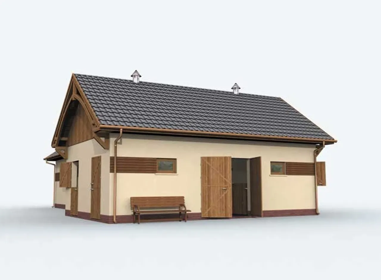 Wypełnij formularz i otrzymaj rysunki w pdf z dokładnymi wymiarami budynku i pomieszczeń (długość, szerokość, wysokość) dla projektu S13 Stajnia dla koni - 4 boksy