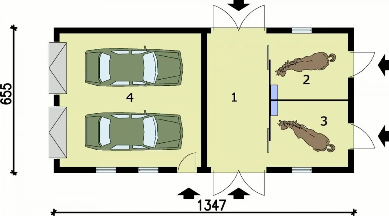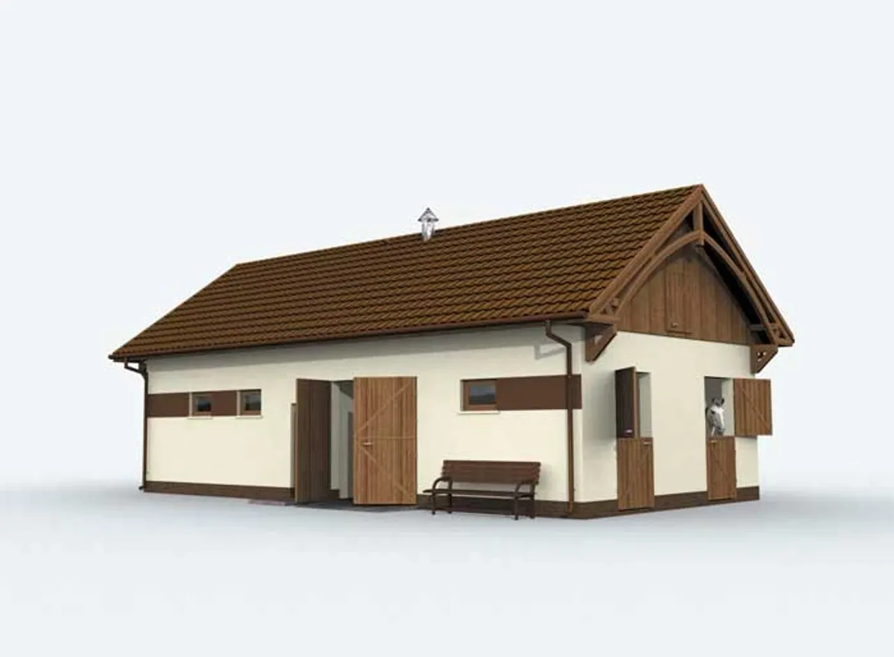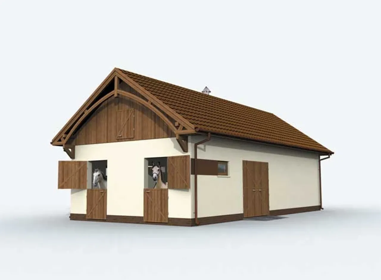 Wypełnij formularz i otrzymaj rysunki w pdf z dokładnymi wymiarami budynku i pomieszczeń (długość, szerokość, wysokość) dla projektu S15 stajnia dla koni - 2 boksy