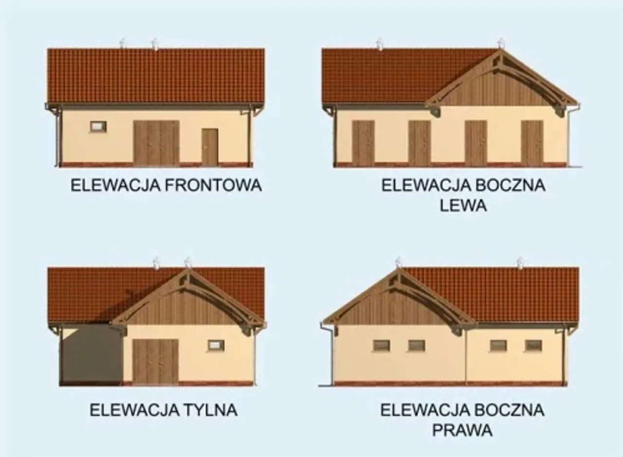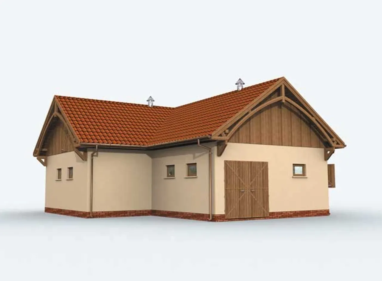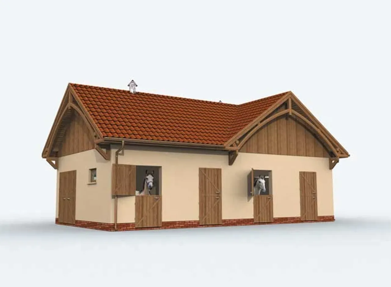 Wypełnij formularz i otrzymaj rysunki w pdf z dokładnymi wymiarami budynku i pomieszczeń (długość, szerokość, wysokość) dla projektu S16 Stajnia dla koni - 4 boksy