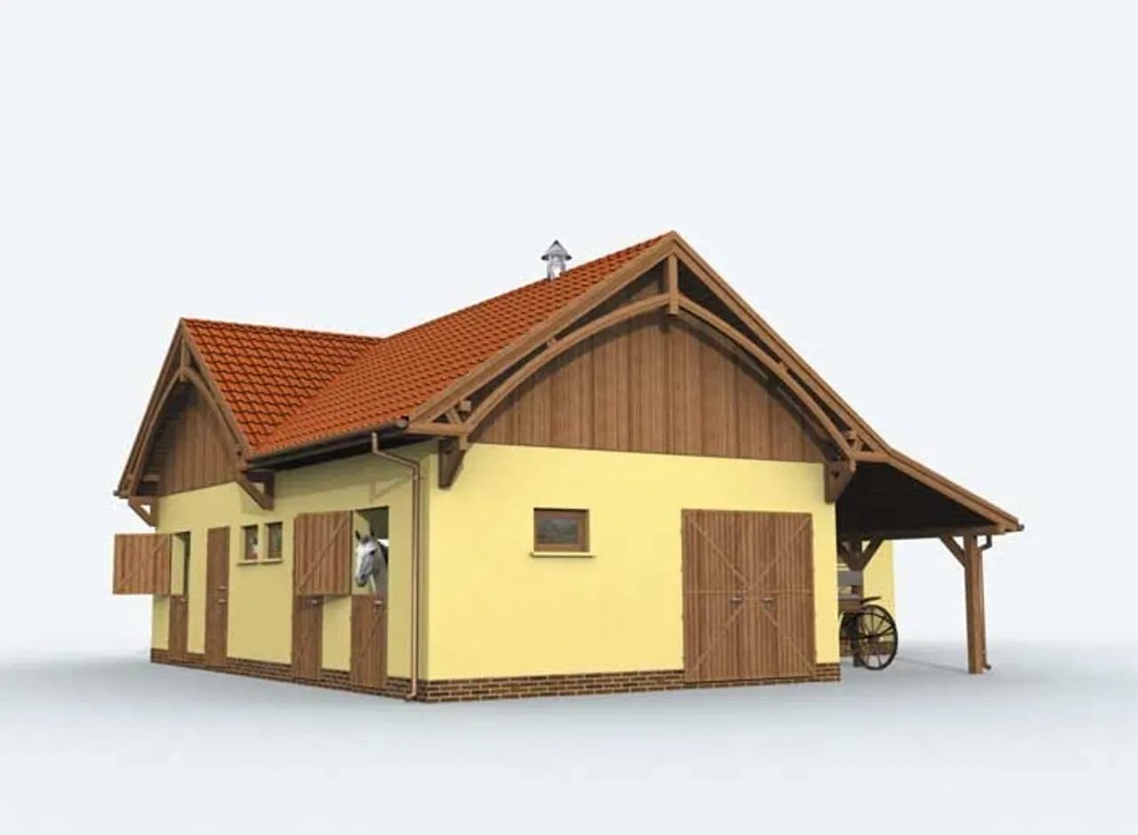 Wypełnij formularz i otrzymaj rysunki w pdf z dokładnymi wymiarami budynku i pomieszczeń (długość, szerokość, wysokość) dla projektu S18 stajnia dla koni - 4 boksy
