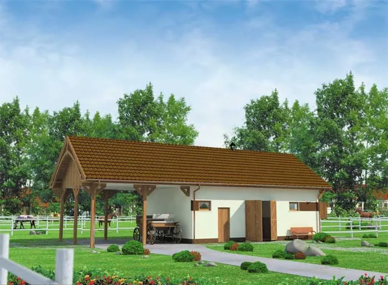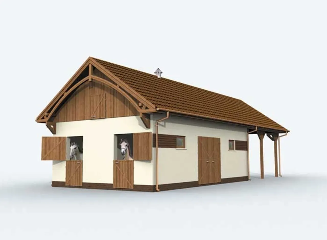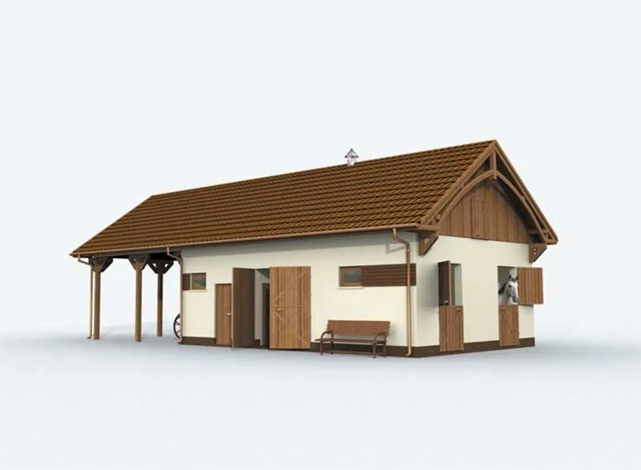 Wypełnij formularz i otrzymaj rysunki w pdf z dokładnymi wymiarami budynku i pomieszczeń (długość, szerokość, wysokość) dla projektu S3 stajnia dla koni - 2 boksy