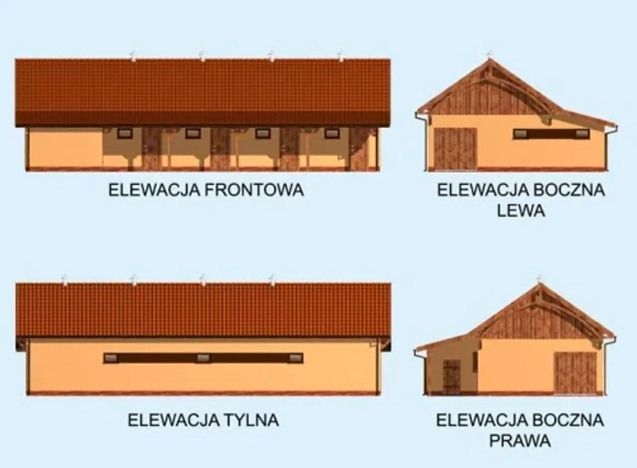 Parametry Techniczne gotowego projektu domu S34 Stajnia dla koni - 4 boksy