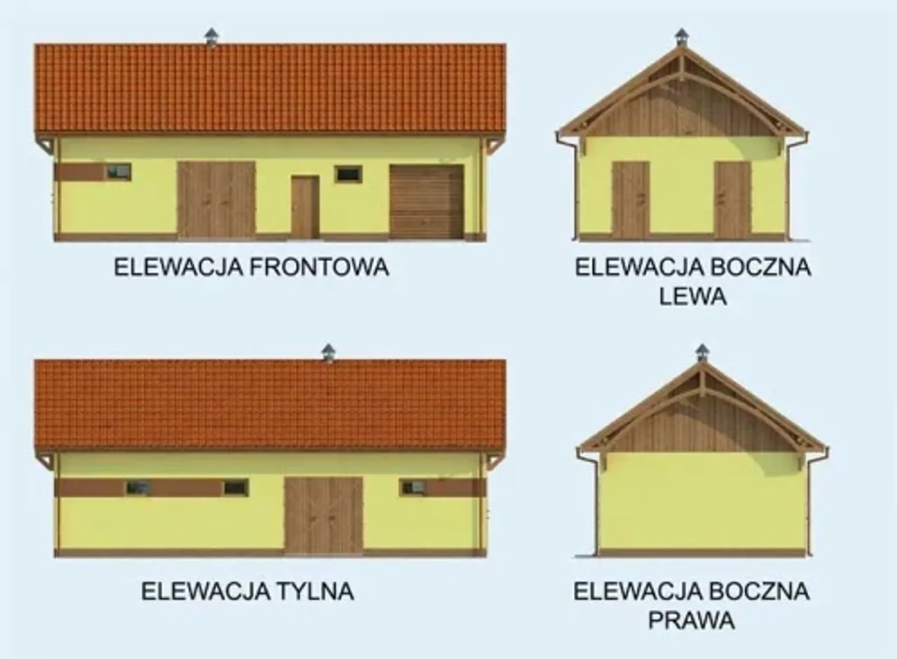 Rzuty gotowego projektu budynku S4 stajnia dla koni - 2 boksy