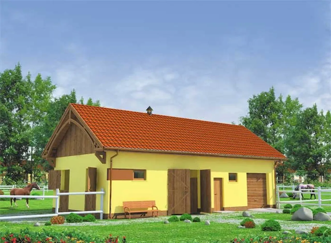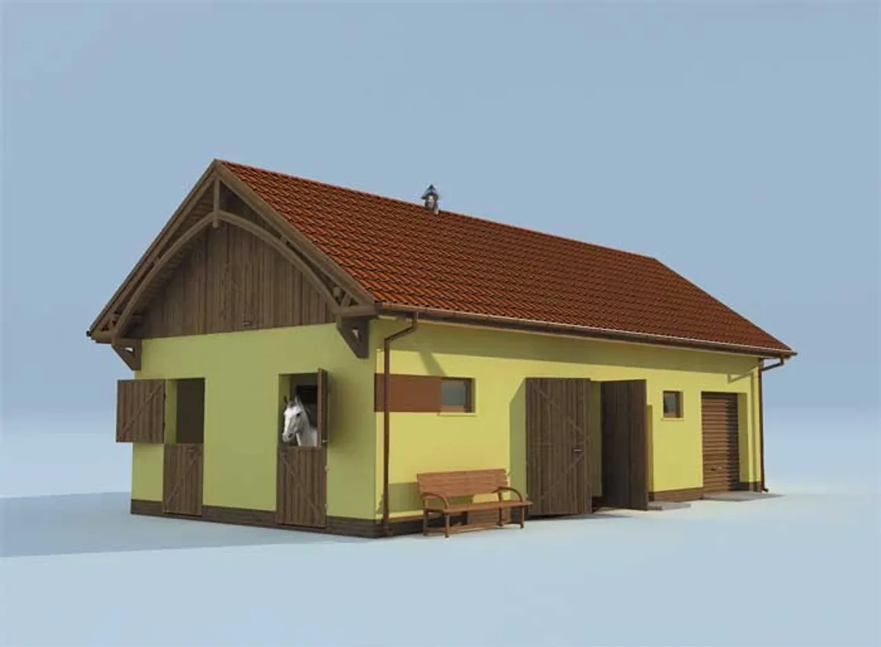 Gotowy projekt budynku S4 stajnia dla koni - 2 boksy (ID: 32051)