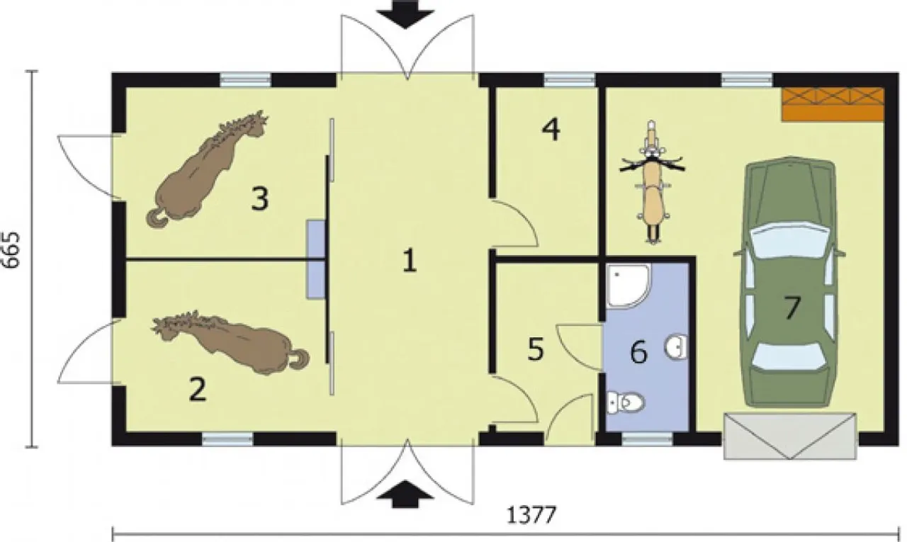 Parametry Techniczne gotowego projektu domu S4 stajnia dla koni - 2 boksy