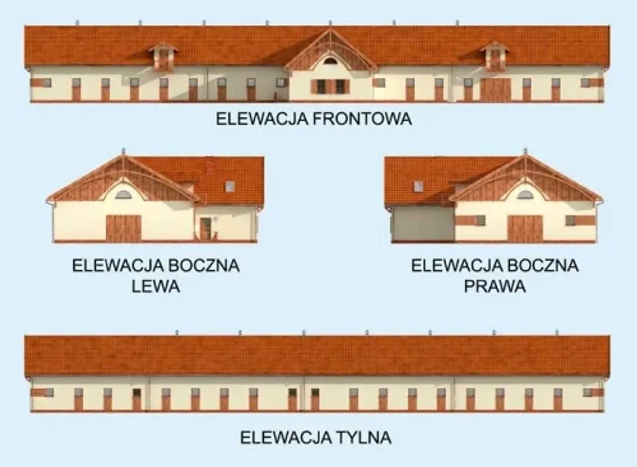 Parametry Techniczne gotowego projektu domu S40 Stajnia dla koni - 26 boksów