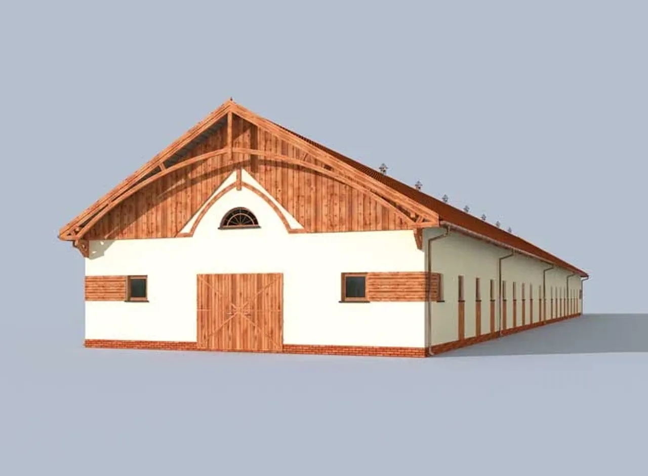 Gotowy projekt budynku S40 Stajnia dla koni - 26 boksów (ID: 32046)