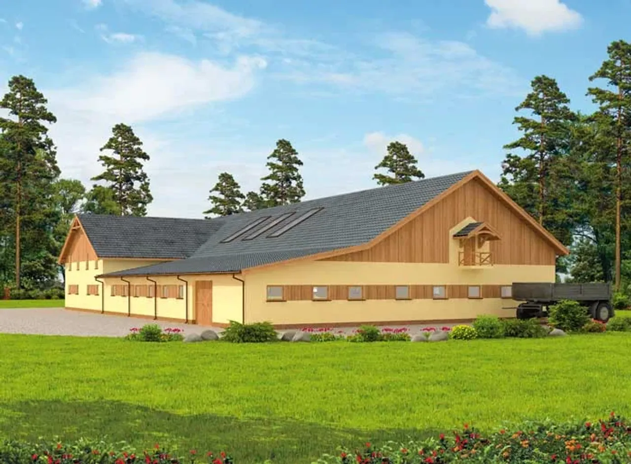 Parametry Techniczne gotowego projektu domu S44 stajnie na 13 boksów z ujeżdżalnią