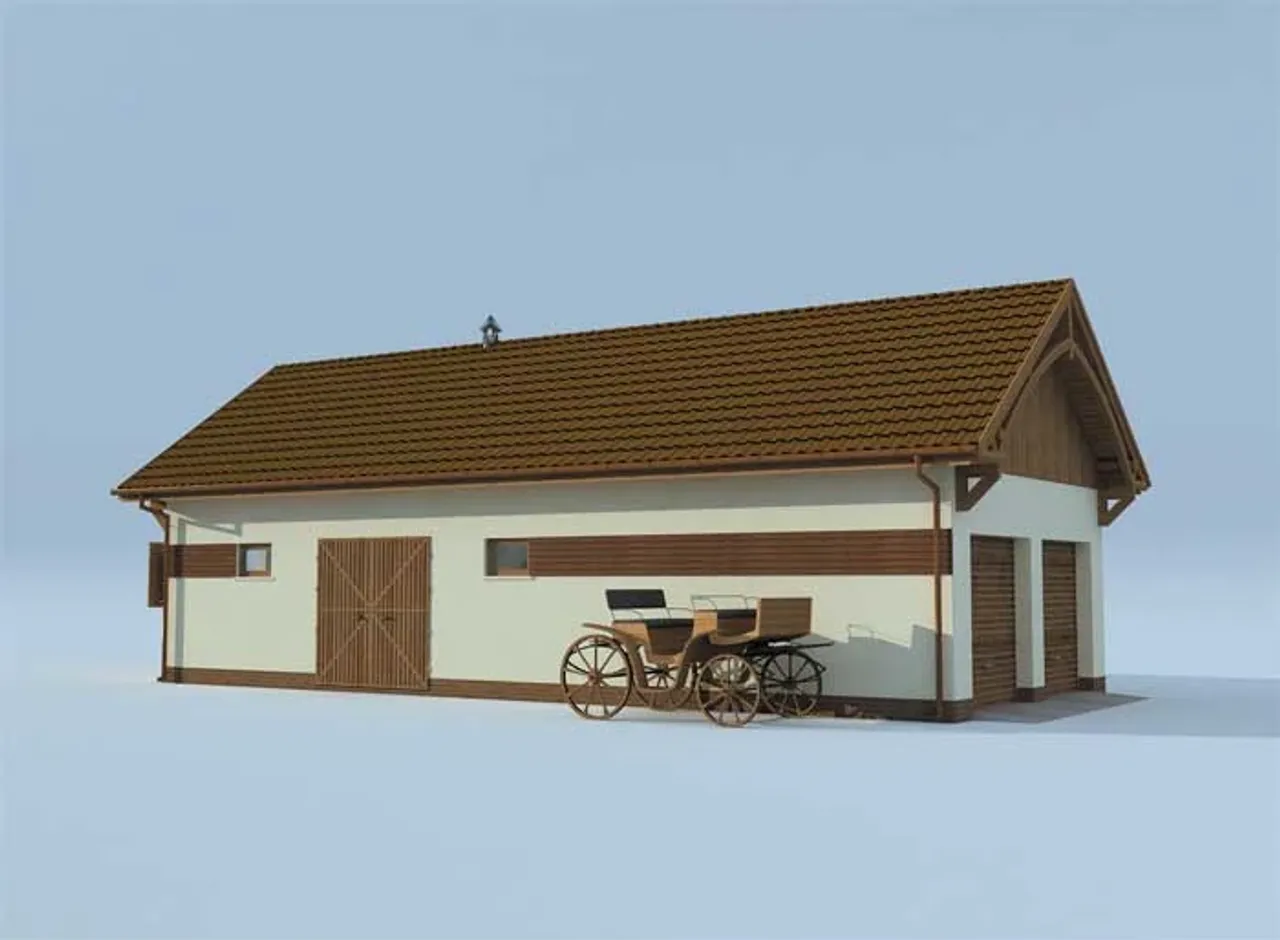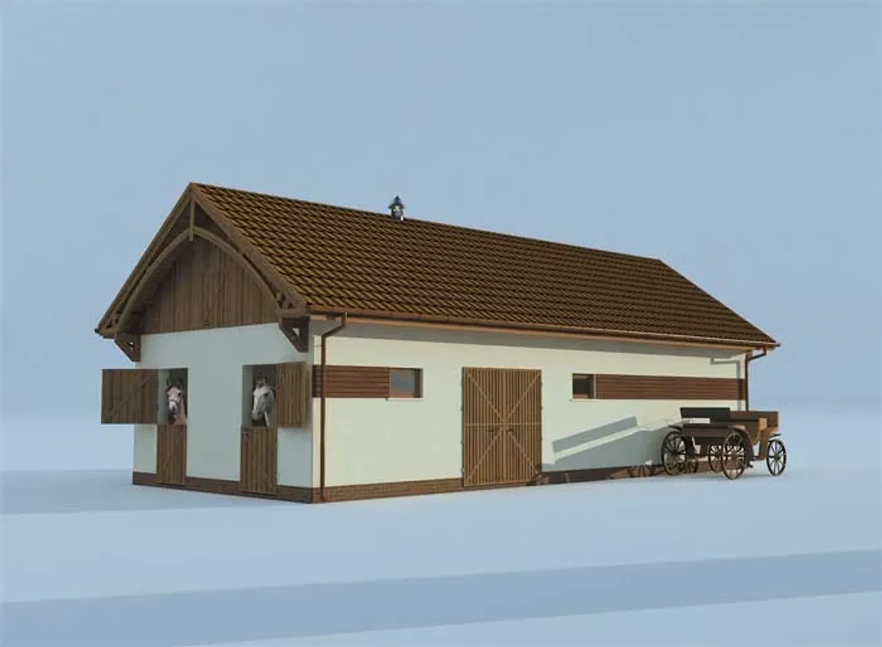 Wypełnij formularz i otrzymaj rysunki w pdf z dokładnymi wymiarami budynku i pomieszczeń (długość, szerokość, wysokość) dla projektu S7 stajnia dla koni - 2 boksy
