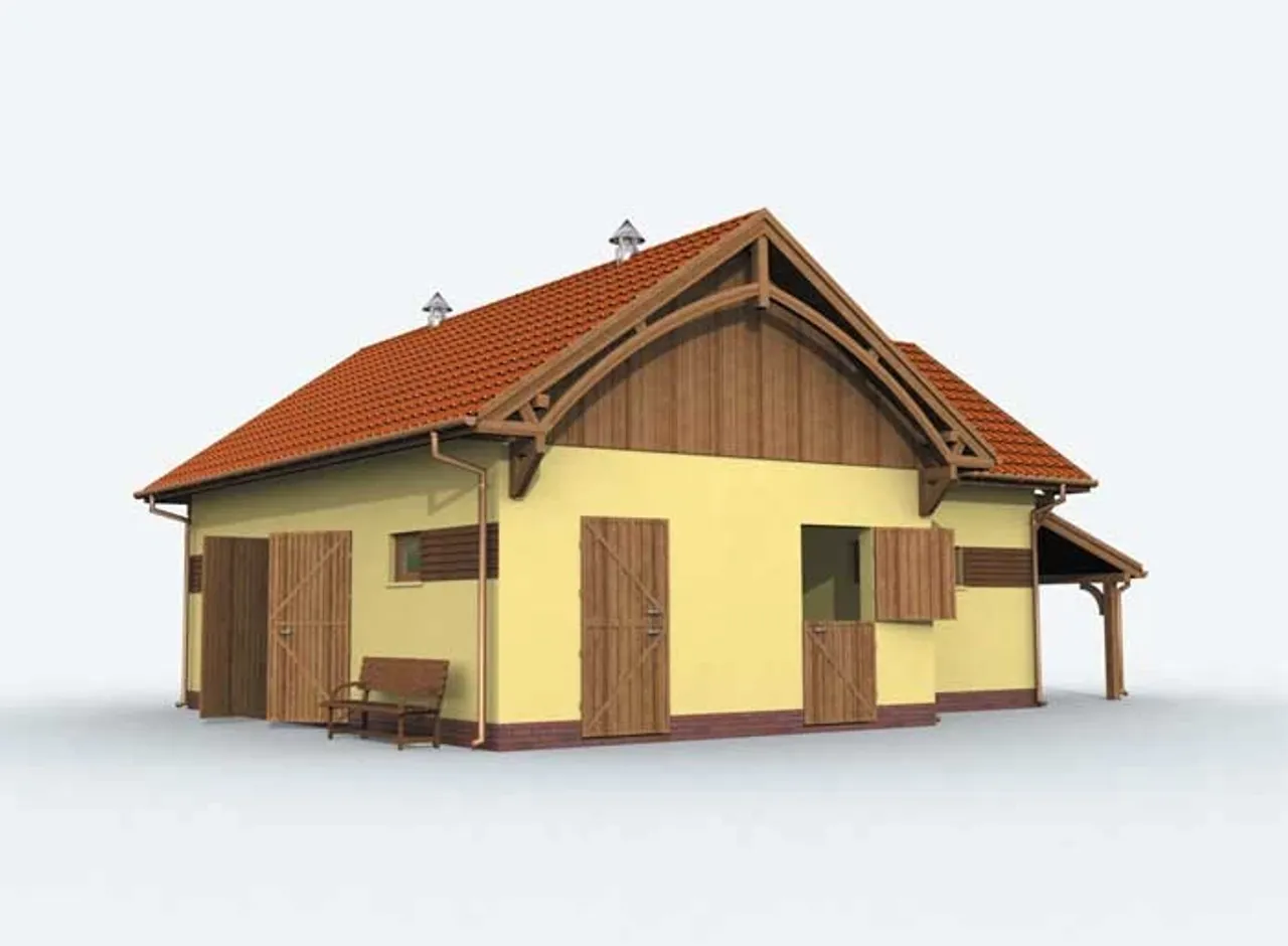 Wypełnij formularz i otrzymaj rysunki w pdf z dokładnymi wymiarami budynku i pomieszczeń (długość, szerokość, wysokość) dla projektu S9 stajnia dla koni - 4 boksy