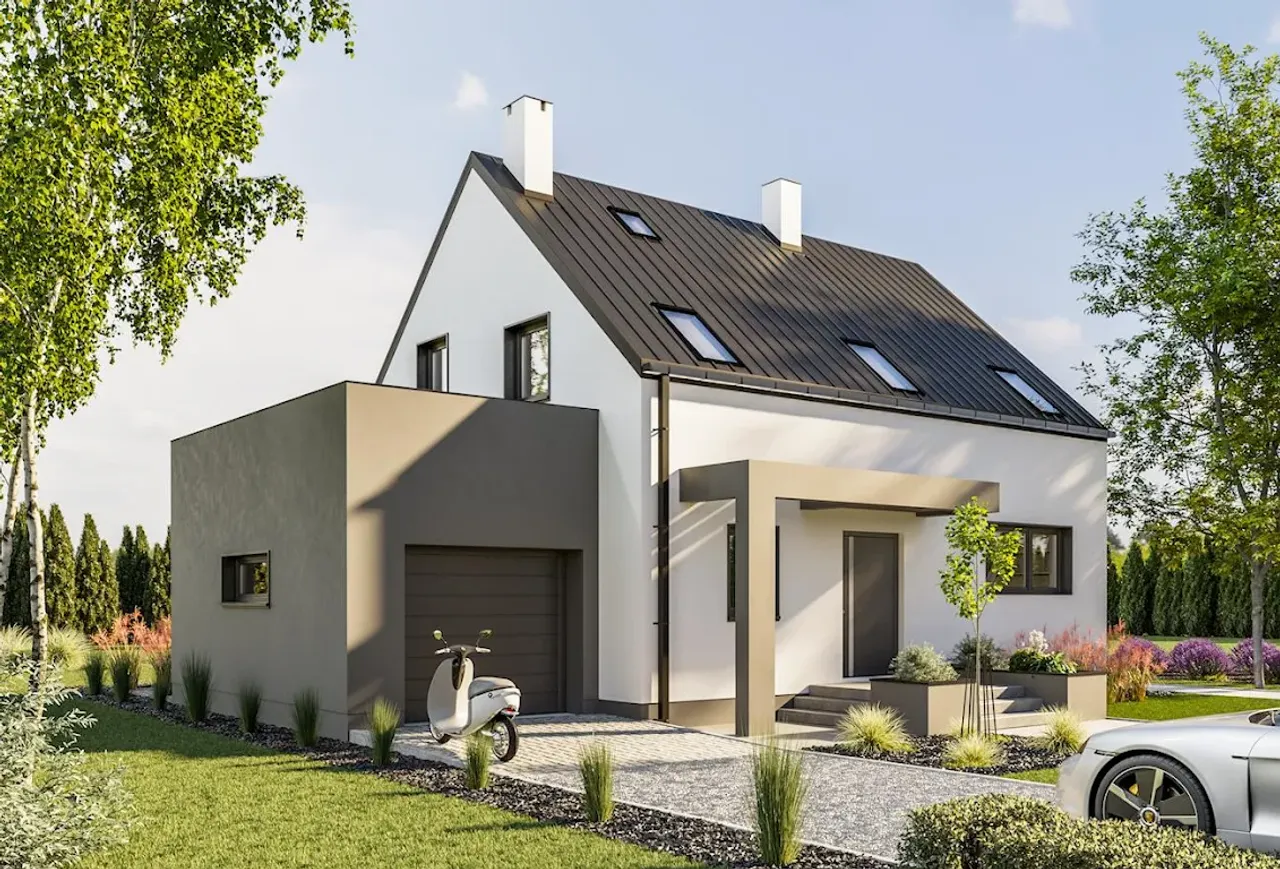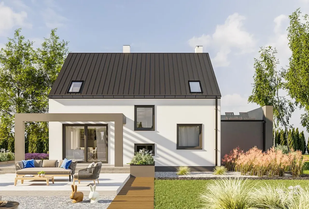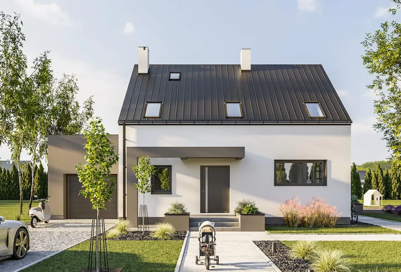 - elewacje - pokazują dokładny wygląd domu od frontu, z tyłu i z boków