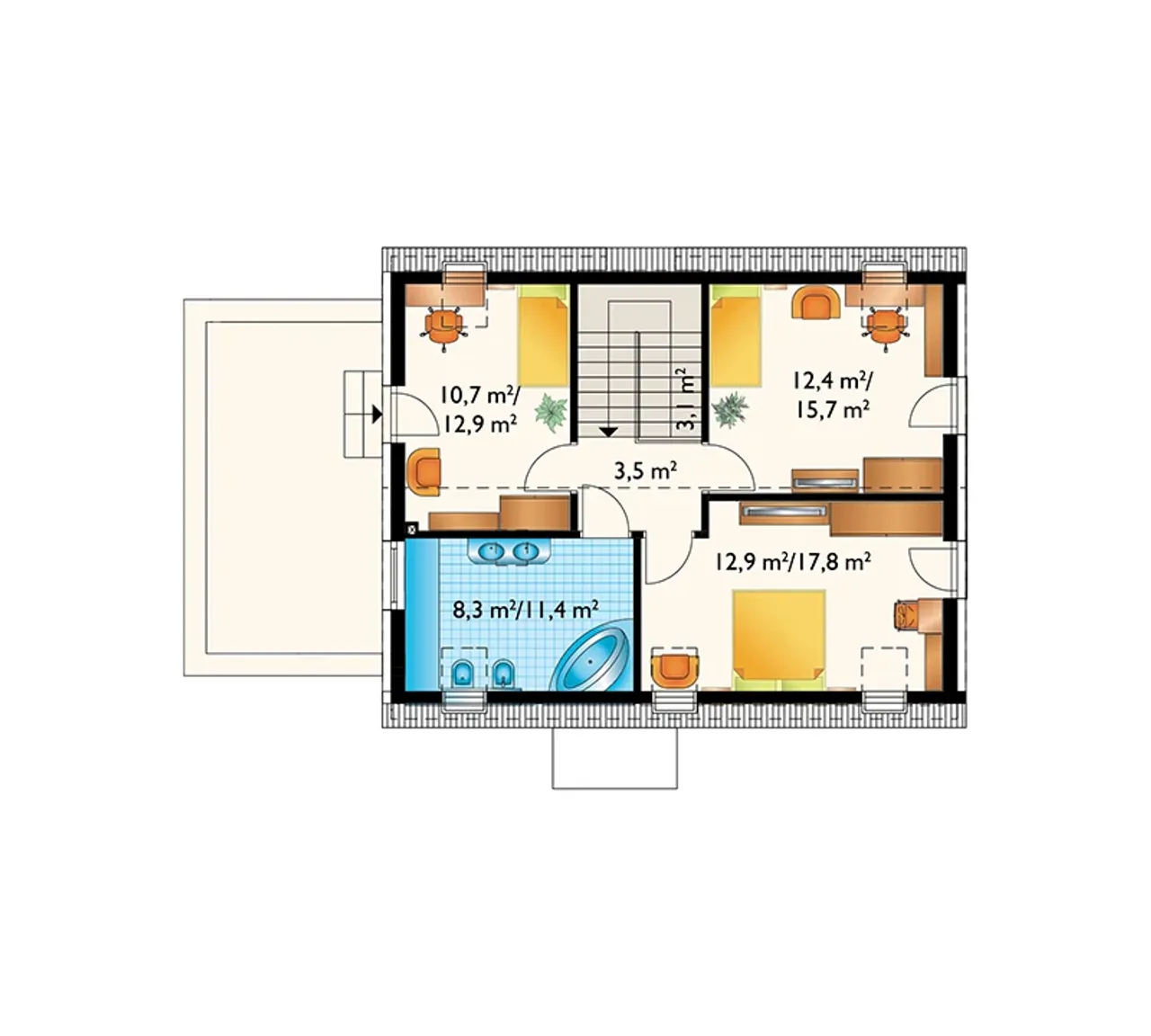 - elewacje - pokazują dokładny wygląd domu od frontu, z tyłu i z boków