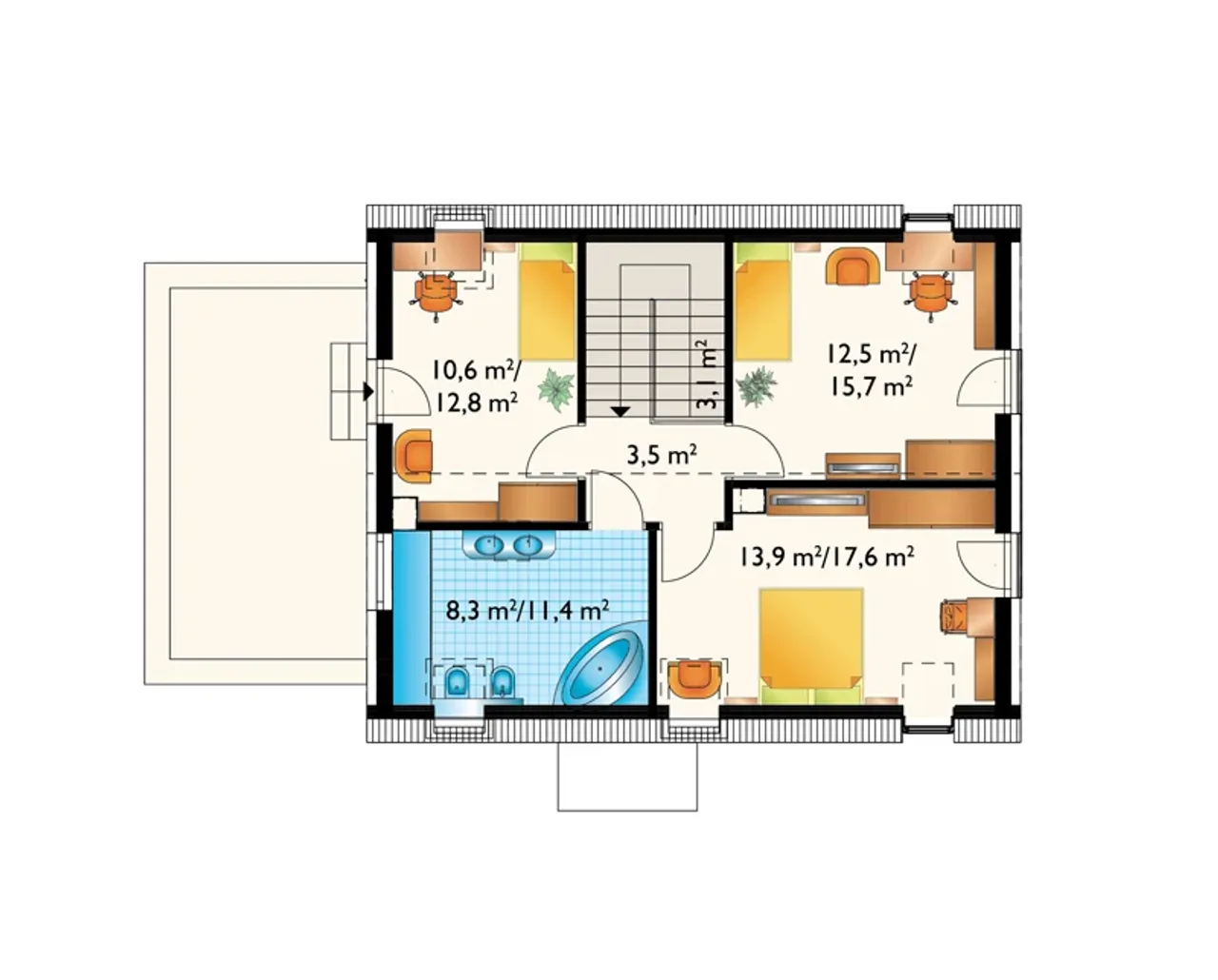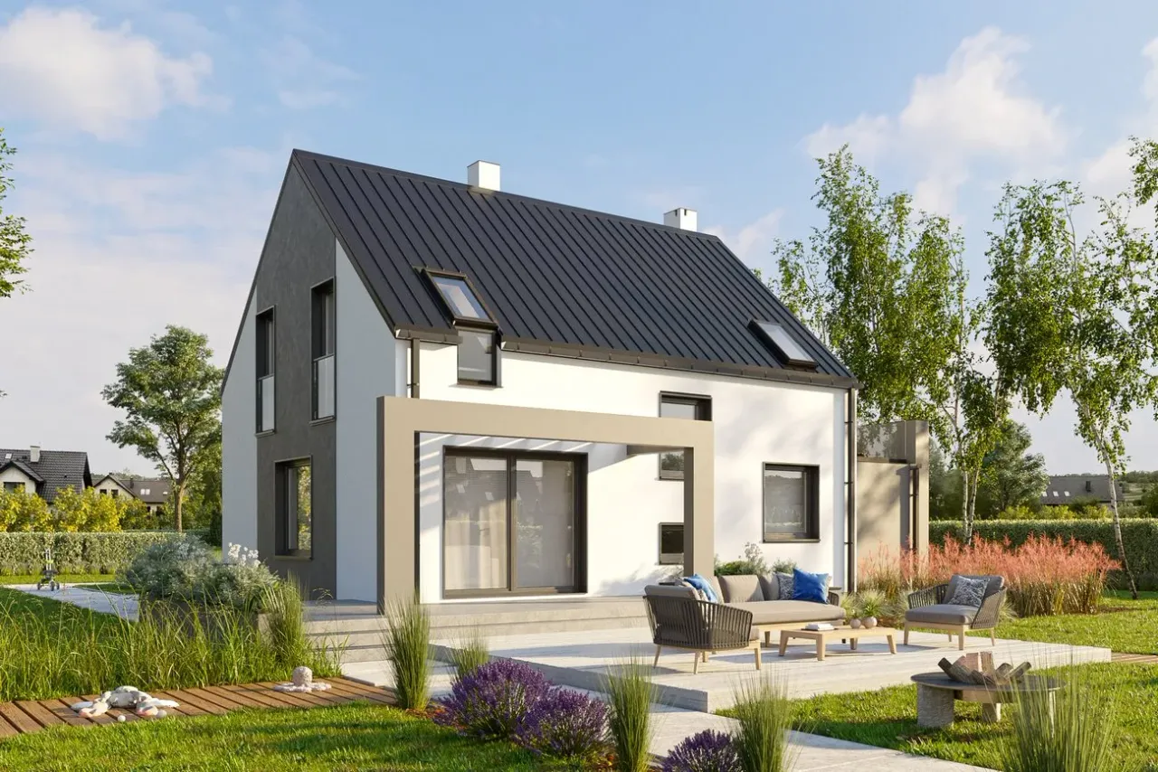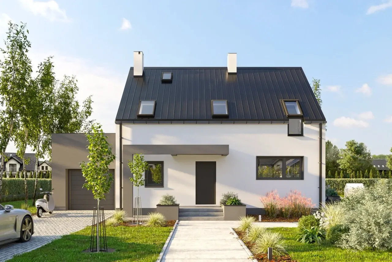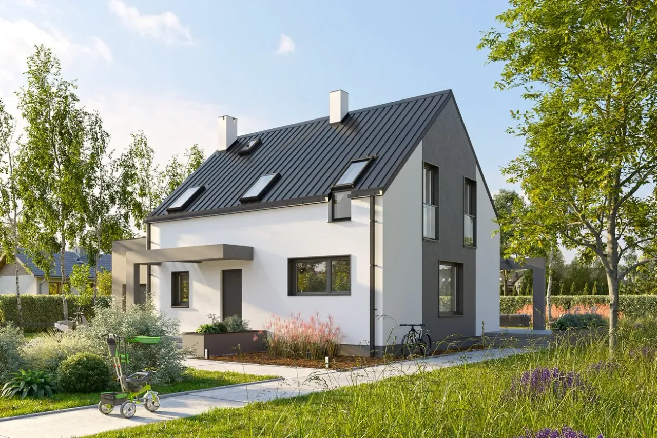 - elewacje - pokazują dokładny wygląd domu od frontu, z tyłu i z boków