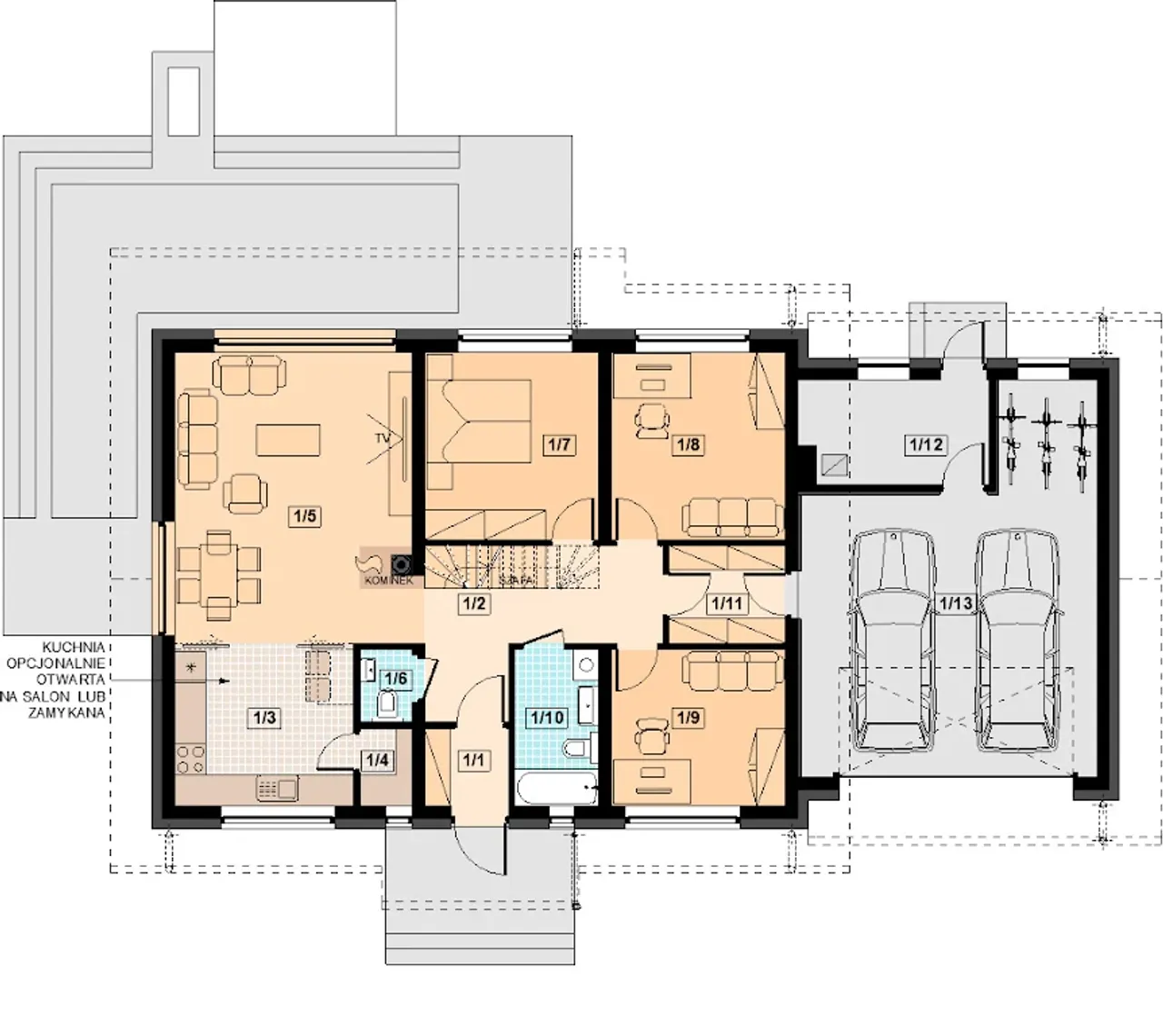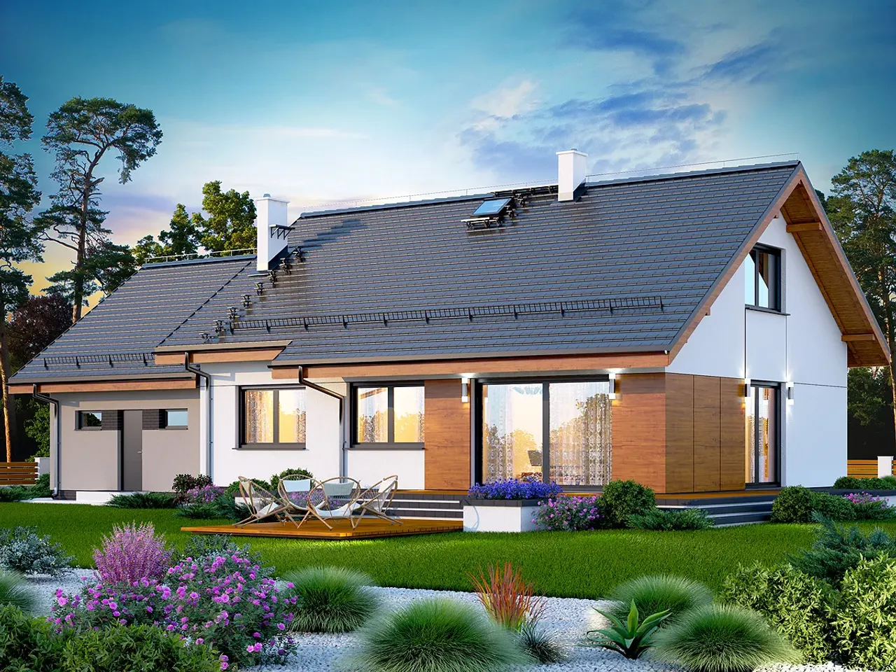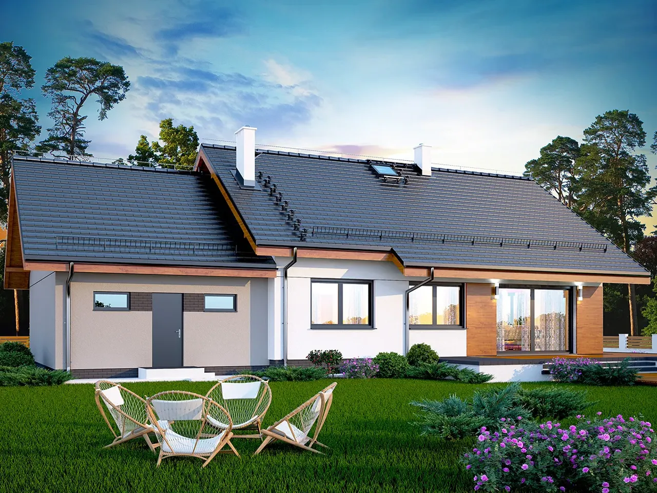 Kupując projekt w technologii murowanej powinieneś budować dom murowany. Zupełna zmiana technologii na szkieletową wymaga przeprojektowania całego budynku ( zmieniają się obciążenia, fundamenty, konstrukcja dachu). Wydamy zgodę na takie przeprojektowanie jednak wiążę się to z dużymi kosztami. Istnieją firmy wykonawcze, które podejmują się zmiany technologii budowy bezpłatnie przy skorzystaniu z ich usług wykonawczych. Zdarza się, że pracownia architektoniczna przygotowuje warianty konkretnego projektu przewidując także inne technologie. Prosimy o sprawdzenie czy istnieje poszukiwana wersja projektu, w zakładce - warianty projektu.