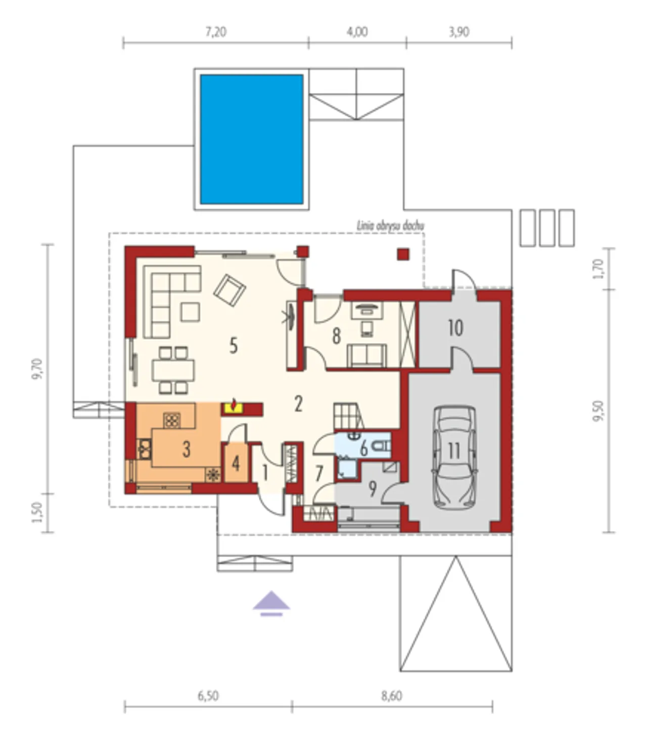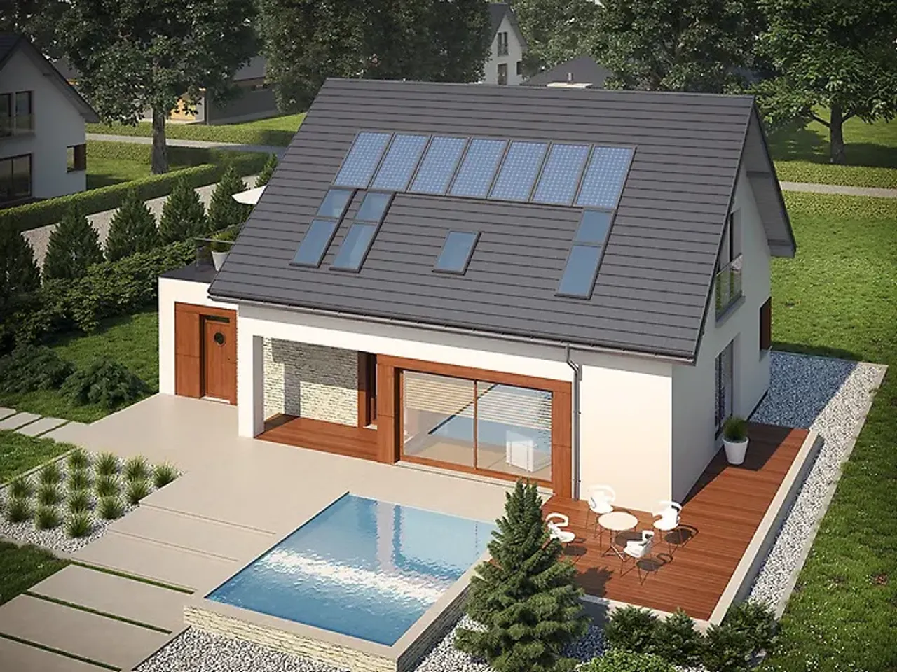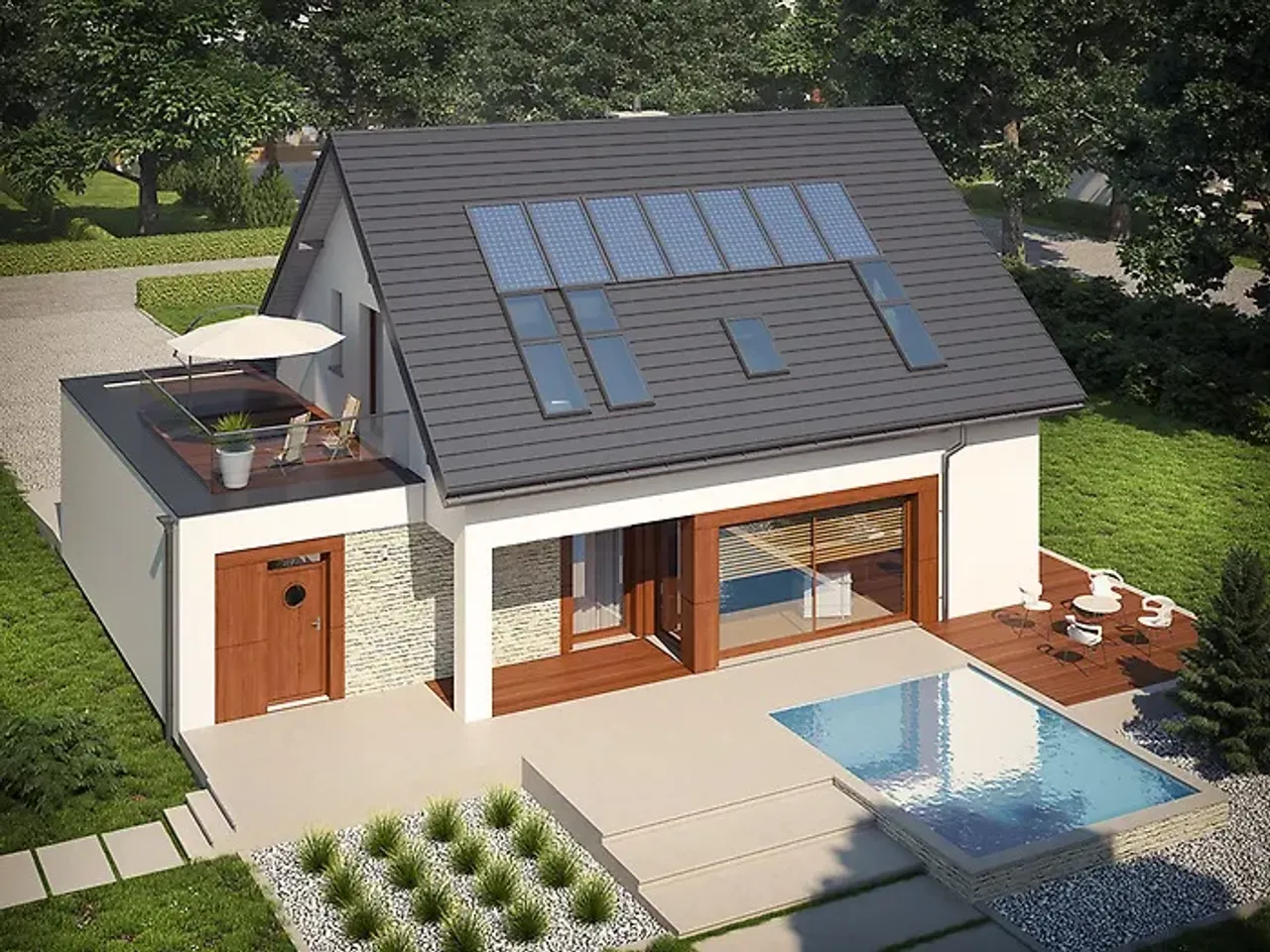 Wypełnij formularz i otrzymaj rysunki w pdf z dokładnymi wymiarami budynku i pomieszczeń (długość, szerokość, wysokość) dla projektu Santiago G1 Energo