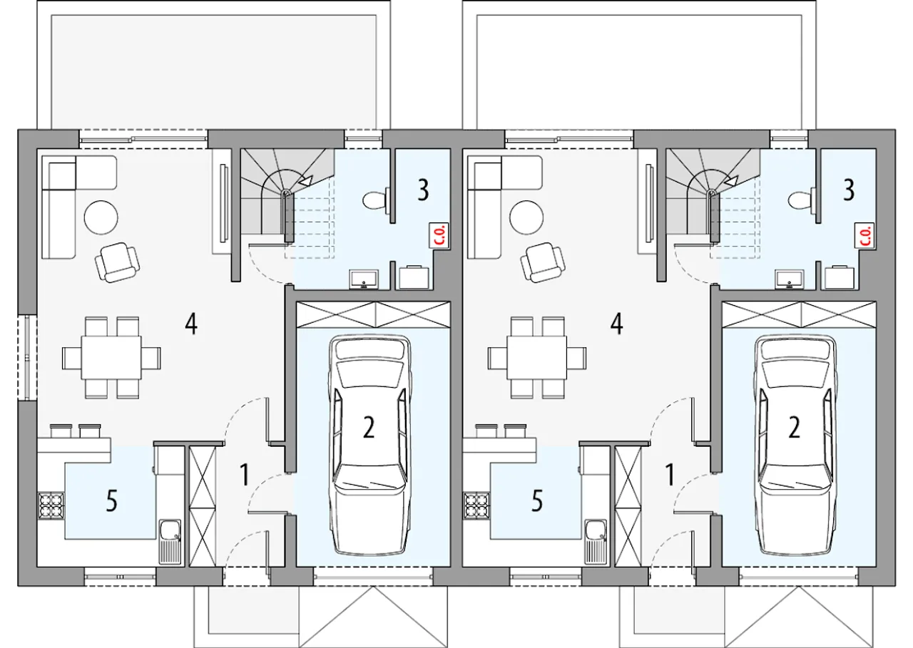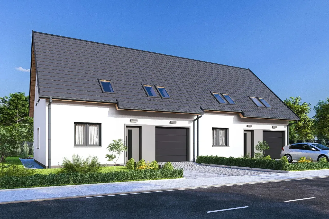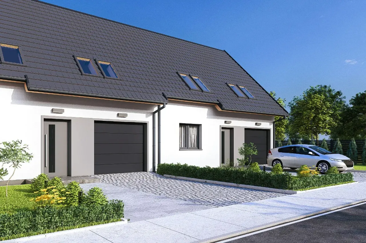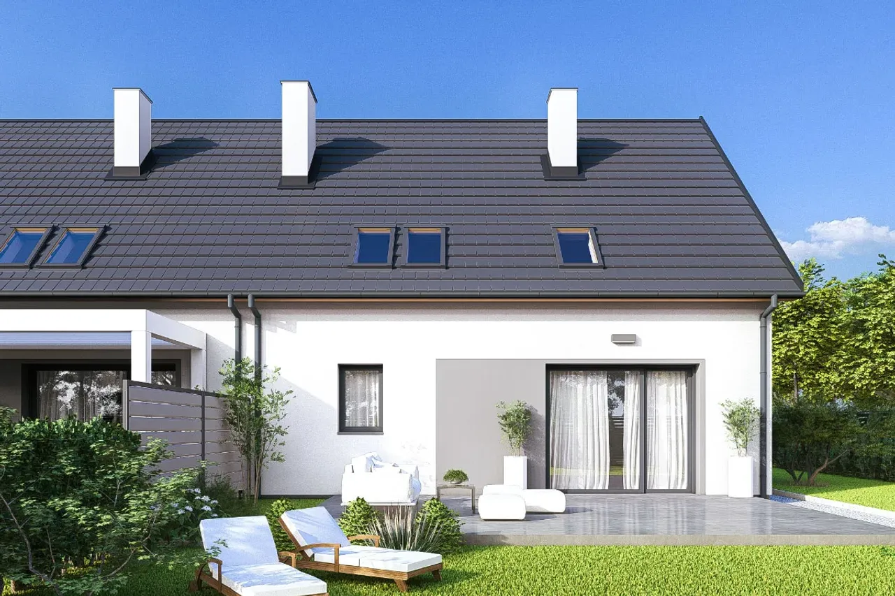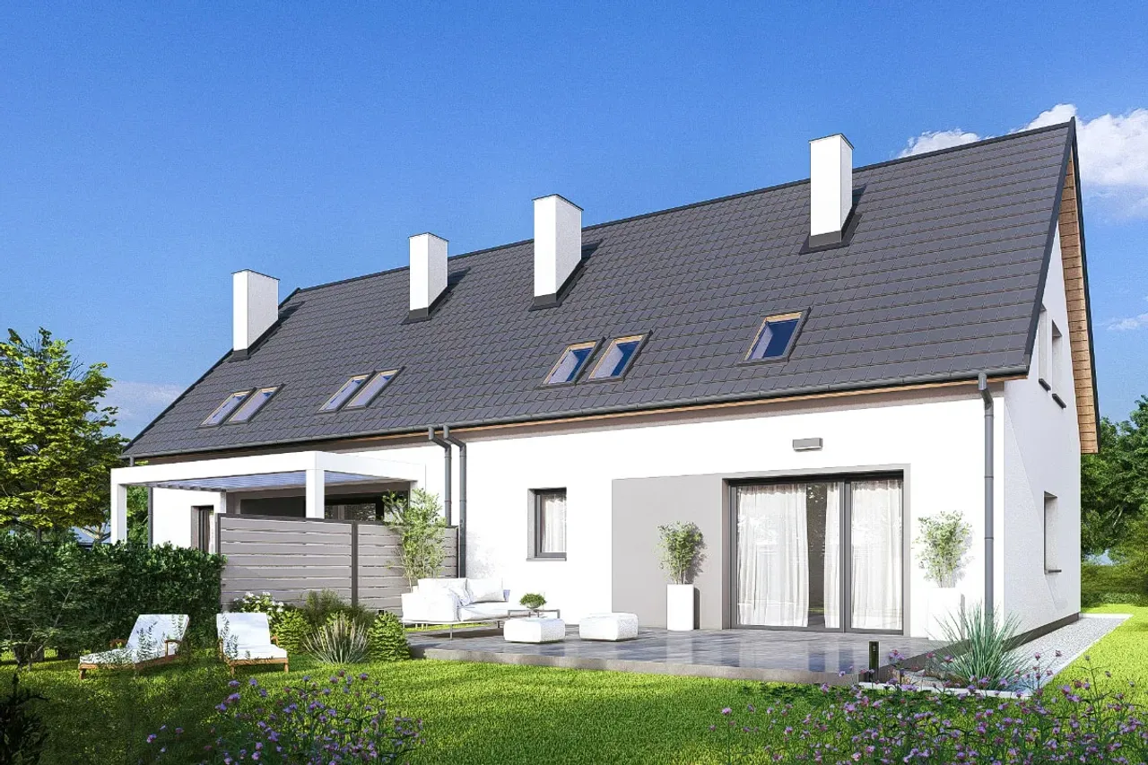 Projekt domu Sara 2 - dwulokalowy L.P jawi się jako doskonała oaza dla poszukujących harmonii między nowoczesnym funkcjonalizmem a przytulnością. Dwulokalowa struktura tego projektu to idealne rozwiązanie dla tych, którzy pragną mieszkać blisko swoich bliskich, jednocześnie zachowując prywatność. Architektura domu z subtelnymi, ale nowoczesnymi liniami fasady roztacza atmosferę gościnności i ciepła. Wnętrze zaprojektowane w sposób considerate, z myślą o optymalnym wykorzystaniu przestrzeni, obiecuje komfort i funkcjonalność na co dzień, co jest kluczem do zaspokojenia życiowych potrzeb każdego domownika. Laterne, które przenikają fasadę, nie tylko dodają elegancji, ale również zapewniają obfitość naturalnego światła, co sprawia, że przestrzenie są zapraszające i pełne życia.
